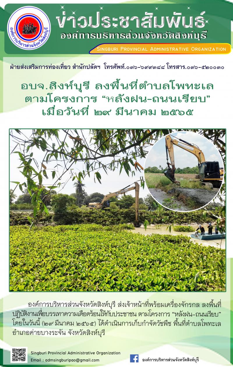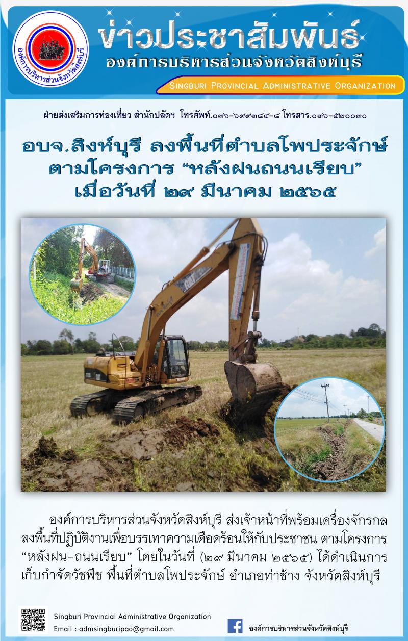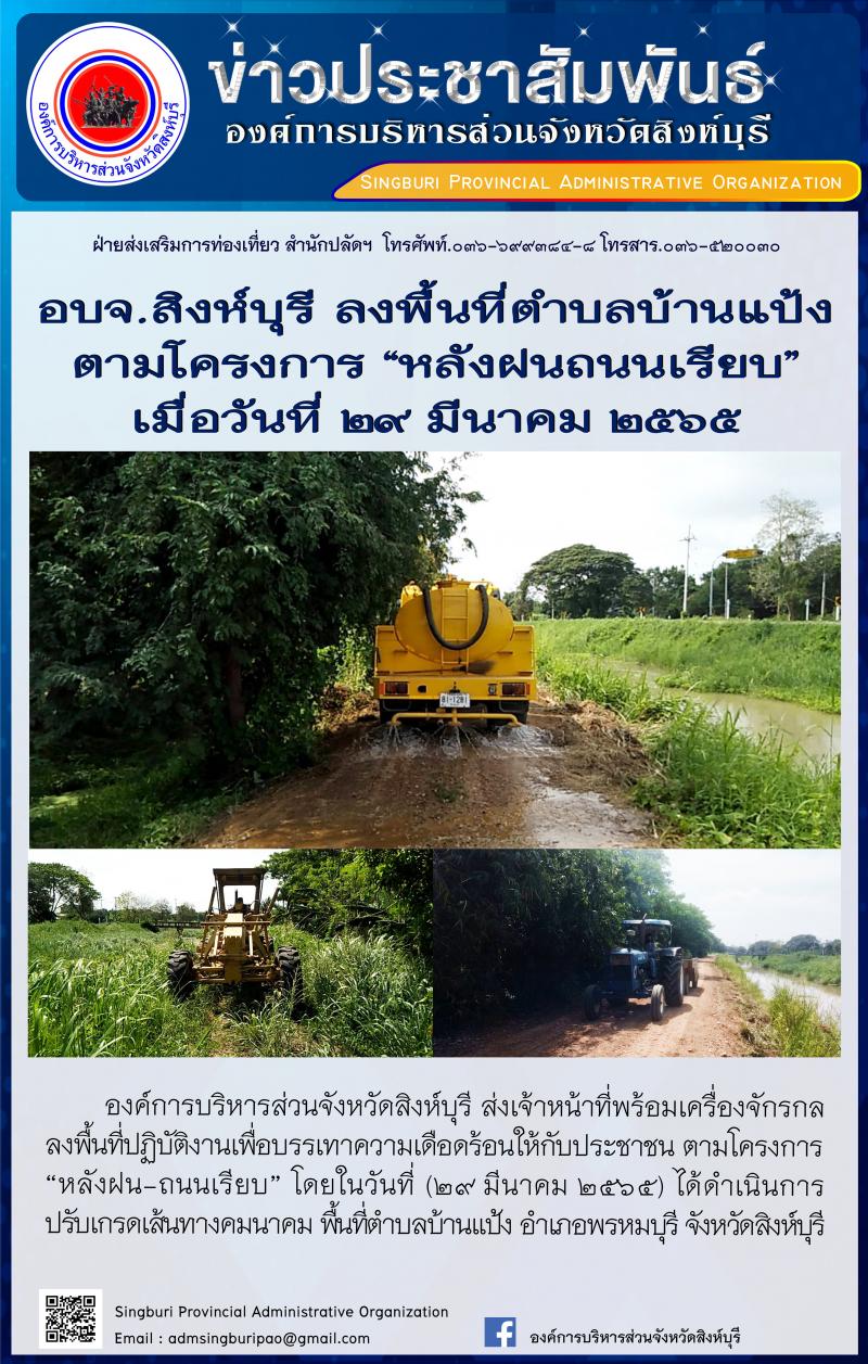 อบจ.สิงห์บุรี ลงพื้นที่ตามโครงการ "หลังฝนถนนเรียบ"