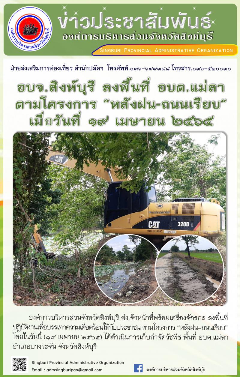 อบจ.สิงห์บุรี ลงพื้นที่ตำบลบางน้ำเชี่ยว ตามโครงการ "หลังฝนถนนเรียบ"