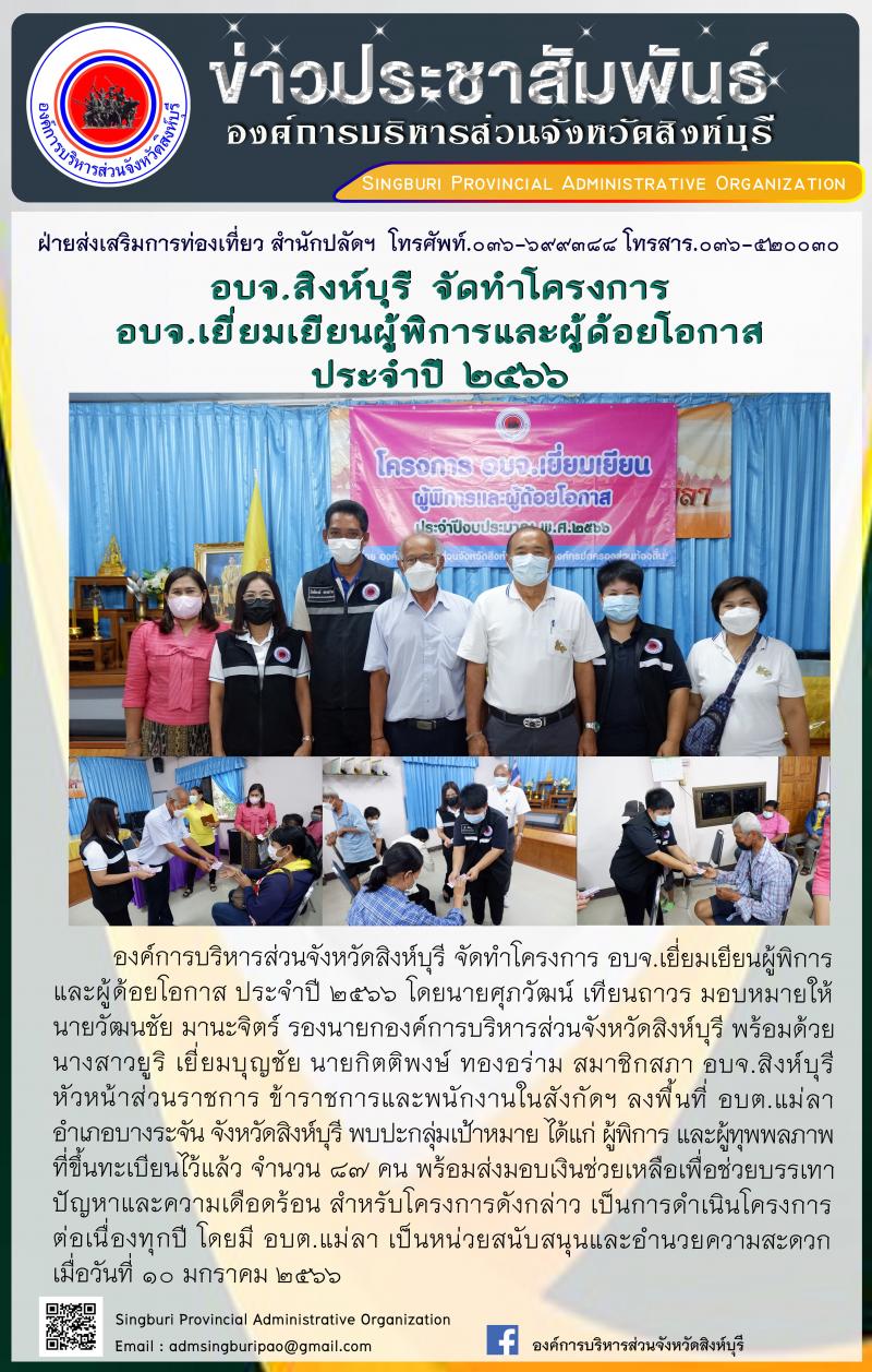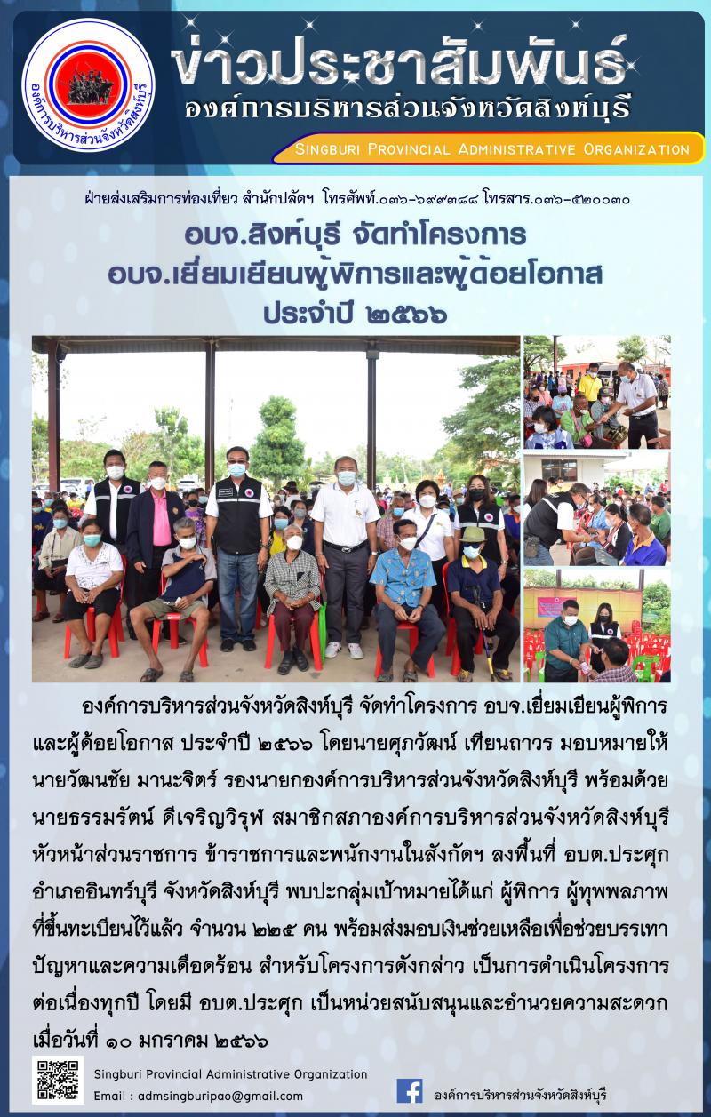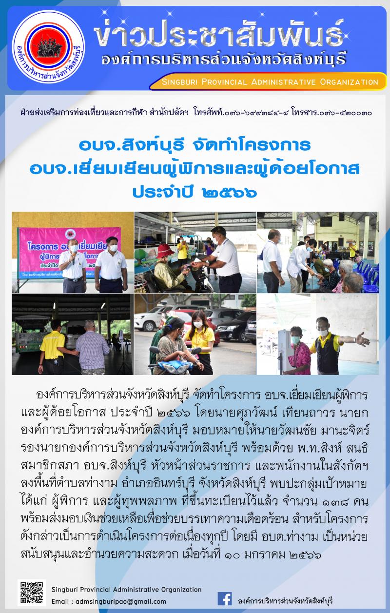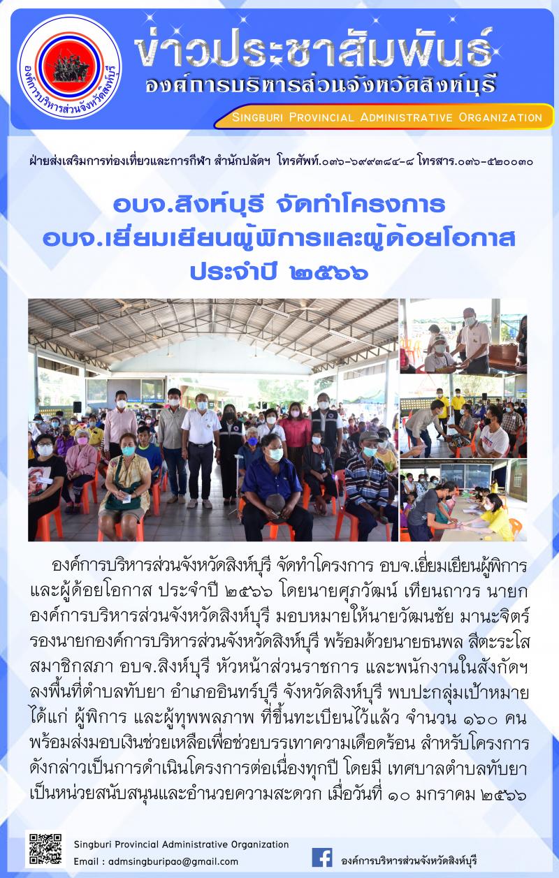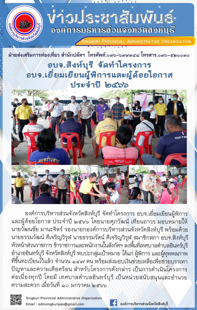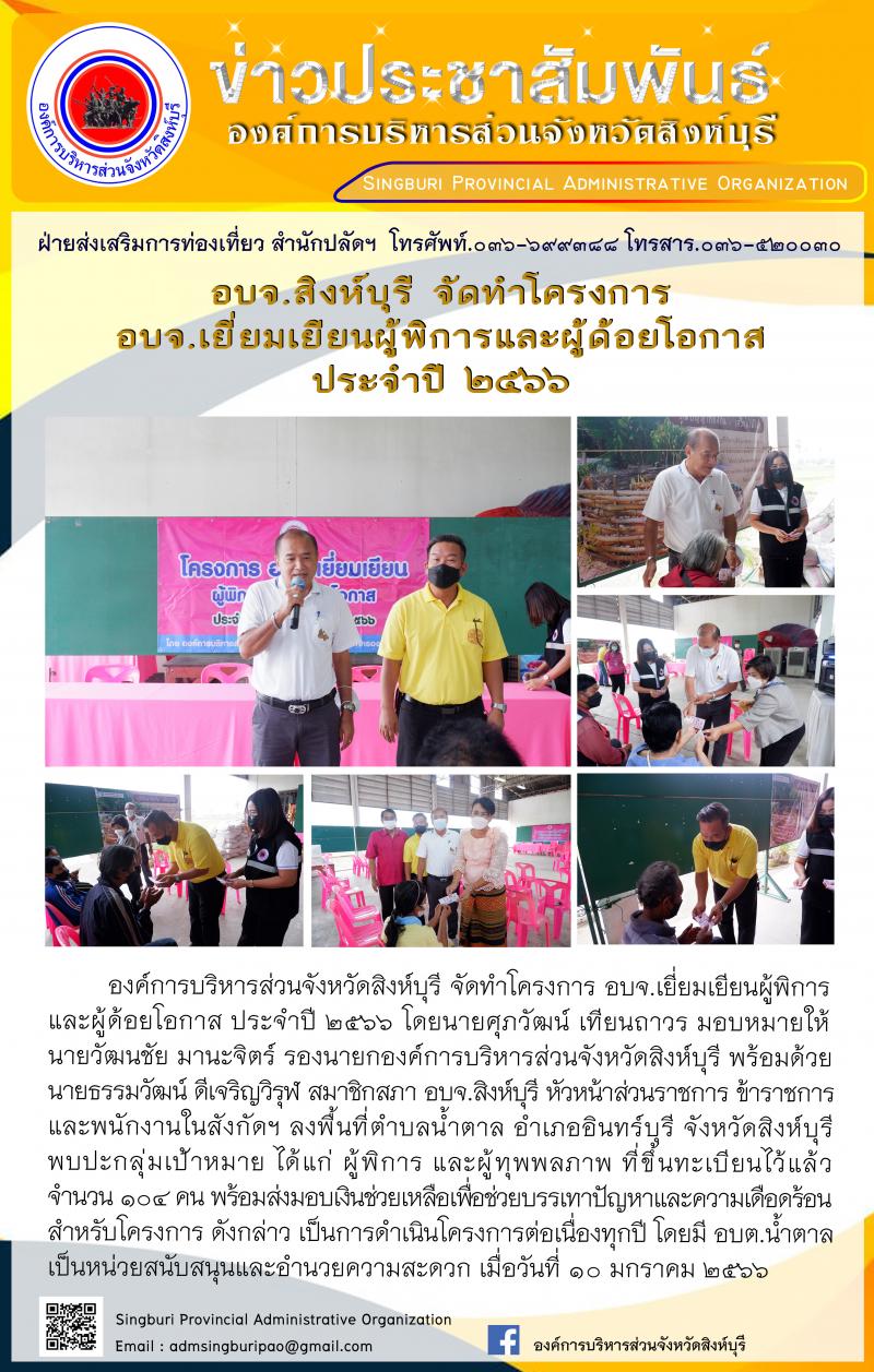 อบจ.สิงห์บุรี จัดโครงการ อบจ.เยี่ยมเยือนผุ้พิการและผู้ด้อยโอกาส ประจำปี 2566