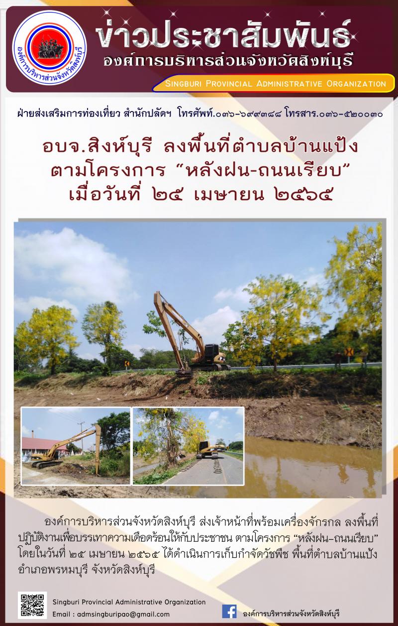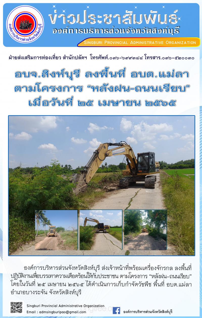 อบจ.สิงห์บุรี ลงพื้นที่ตามโครงการ "หลังฝนถนนเรียบ"
