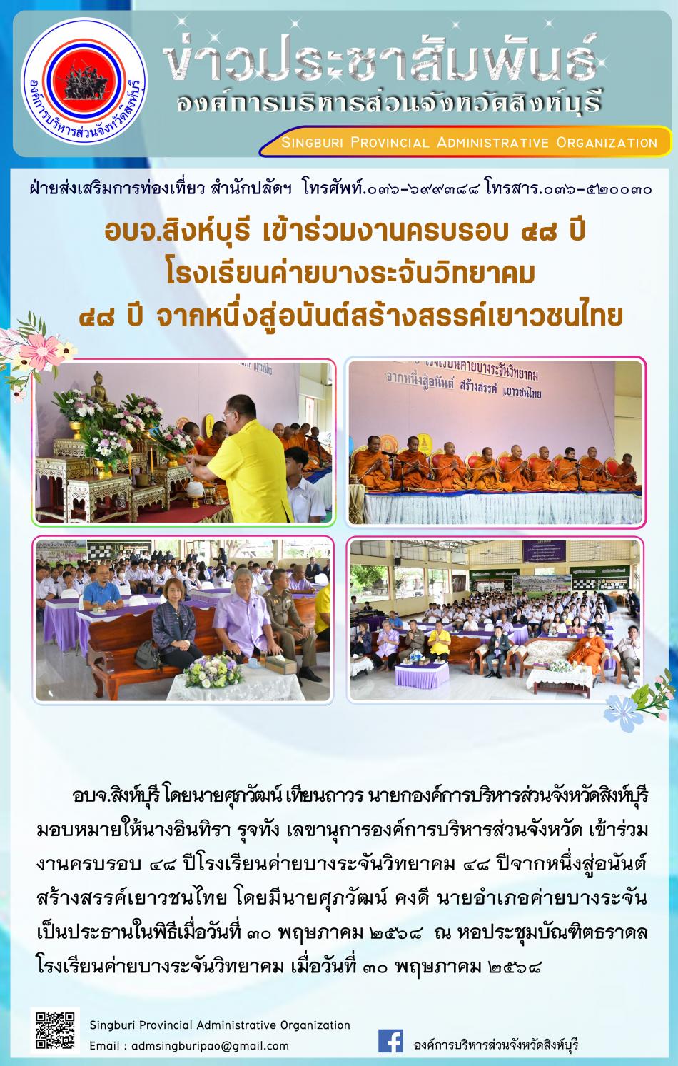 อบจ.สิงห์บุรี เข้าร่วมงานครบรอบ 48 ปี โรงเรียนค่ายบางระจันวิทยาคม 48 ปี จากหนุ่งสู่อนนต์สร้างสรรค์เยาวชนไทย [30 พฤษภาคม 2568]