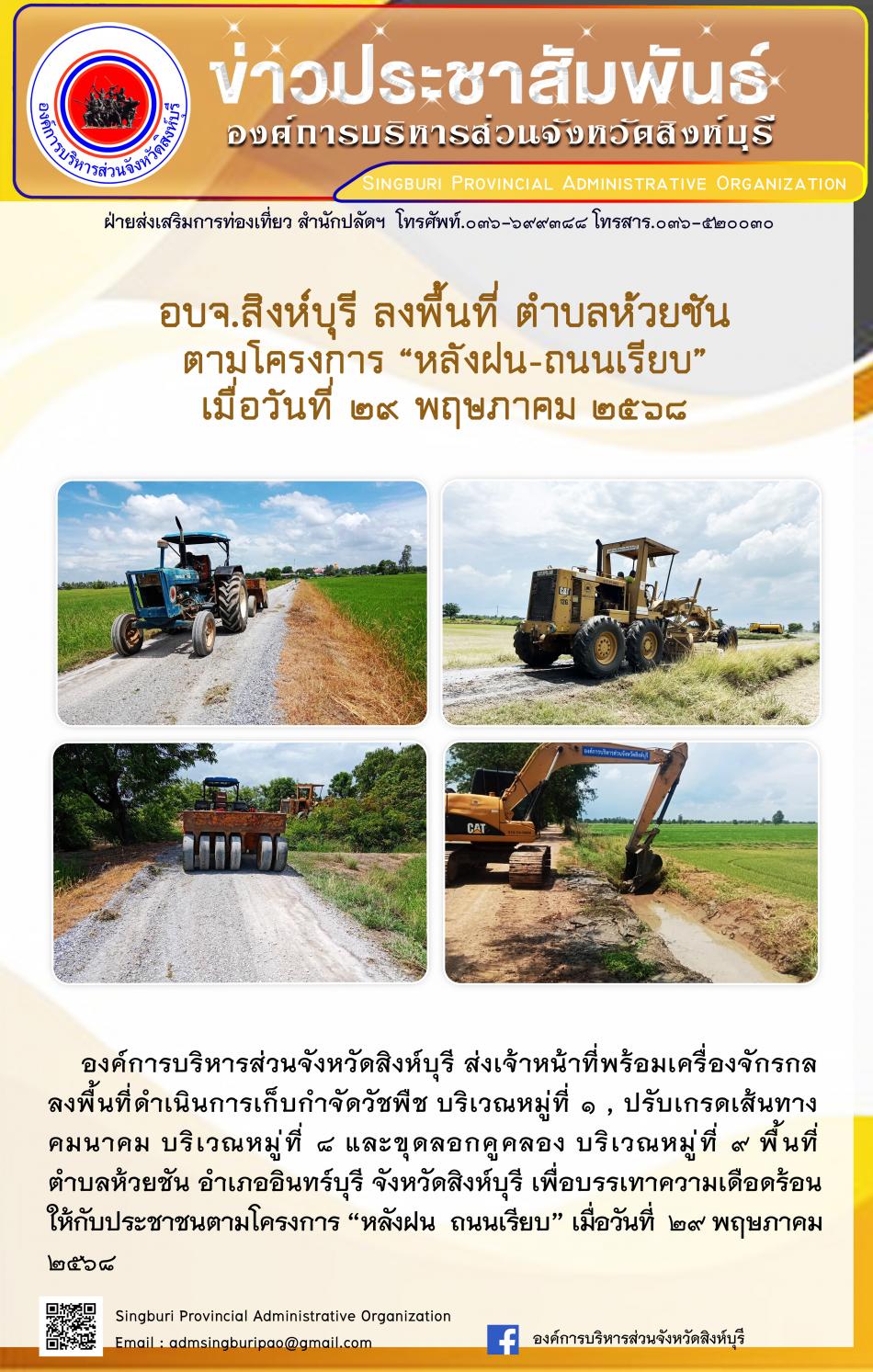 อบจ.สิงห์บุรี ลงพื้นที่ ห้วยชัน ตามโครงการ "หลังฝน - ถนนเรียบ" [29 พฤษภาคม 2568]
