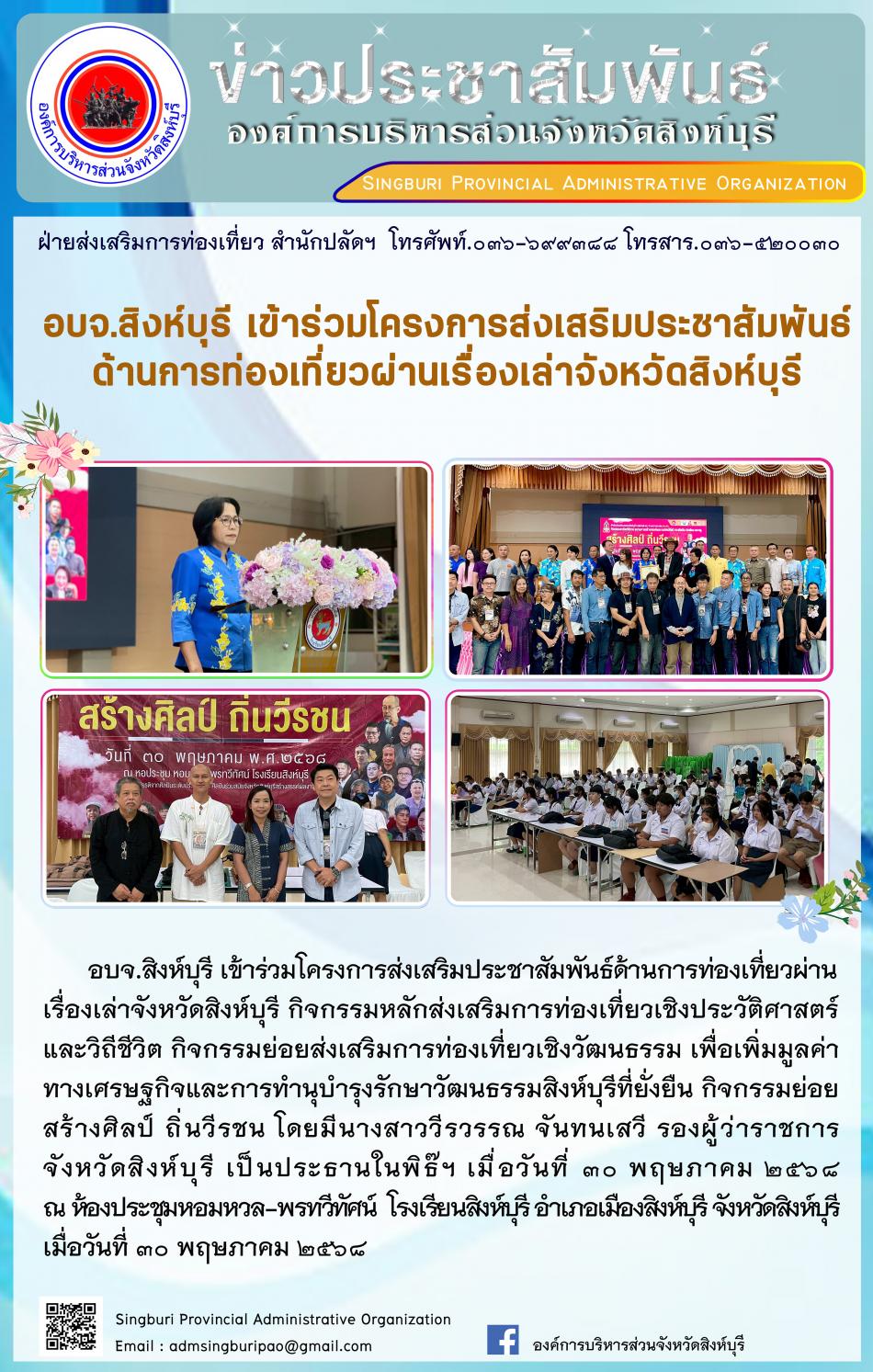 อบจ.สิงห์บุรี เข้าร่วมโครงการส่งเสริมประชาชนสัมพันธ์ ด้านการท่องเที่ยวผ่านเรื่องเล่าจังหวัดสิงห์บุรี [30 พฤษภาคม 2568]