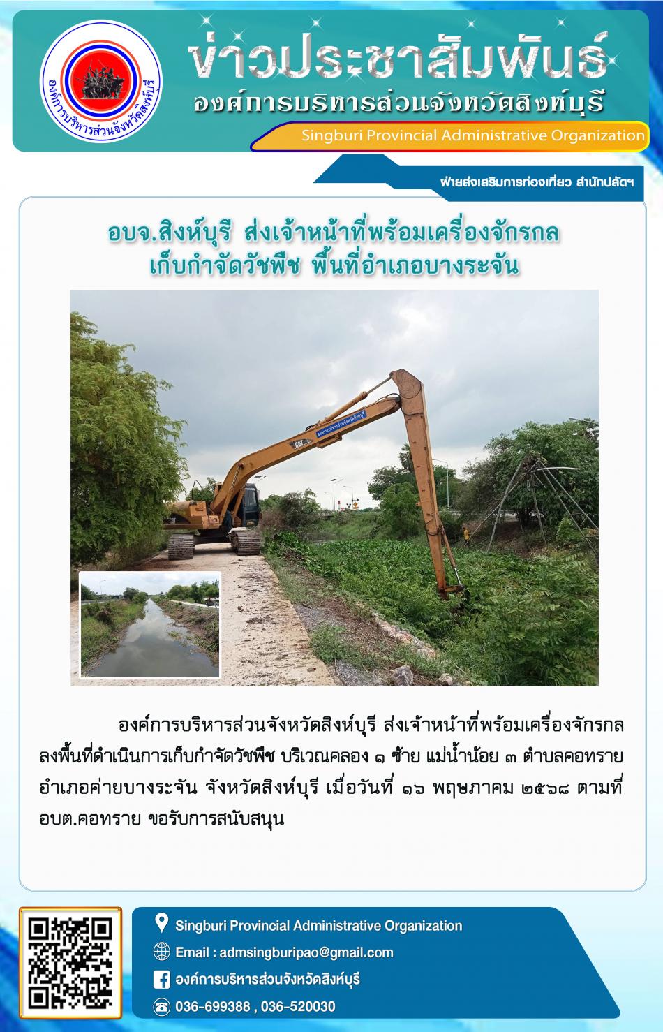 อบจ.สิงห์บุรี ส่งเจ้าหน้าที่พร้อมเครื่องจักรกล เก็บกำจัดวัชพืช พื้นที่อำเภอบางระจัน [16 พฤษภาคม 2568]