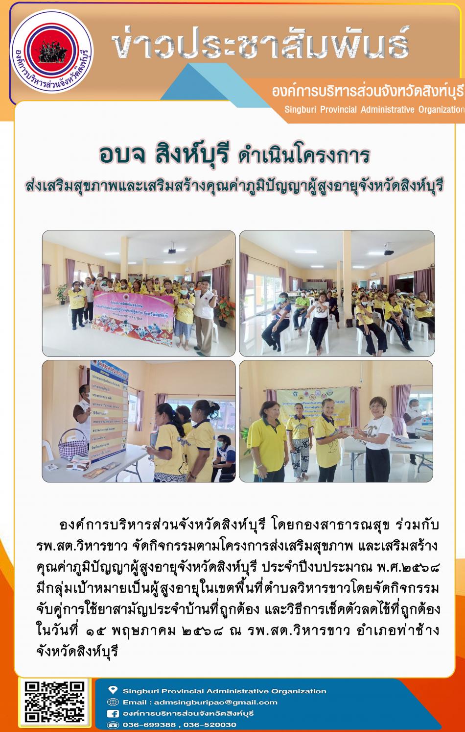 อบจ.สิงห์บุรี ดำเนินโครงการส่งเสริมสร้างคุณค่าภูมิปัญญาผู้สูงอายุจังหวัดสิงห์บุรี [15 พฤษภาคม 2568]