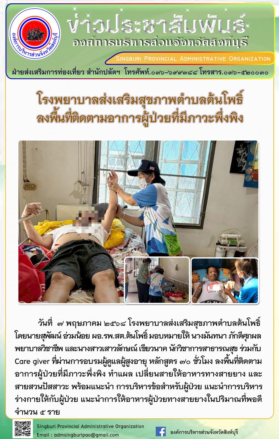 โรงพยาบาลส่งเสริมสุขภาพตำบลต้นโพธิ์ ลงพื้นที่ติดตามอาการผู้ป่วยที่มีภาวะพึ่งพิง [7 พฤษภาคม 2568]