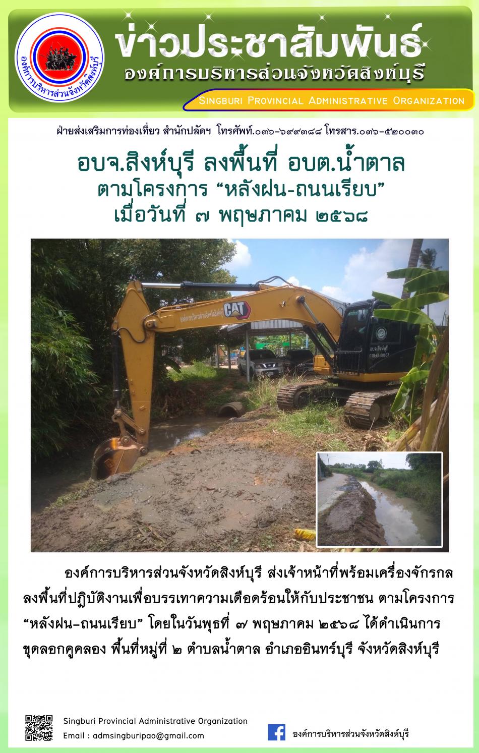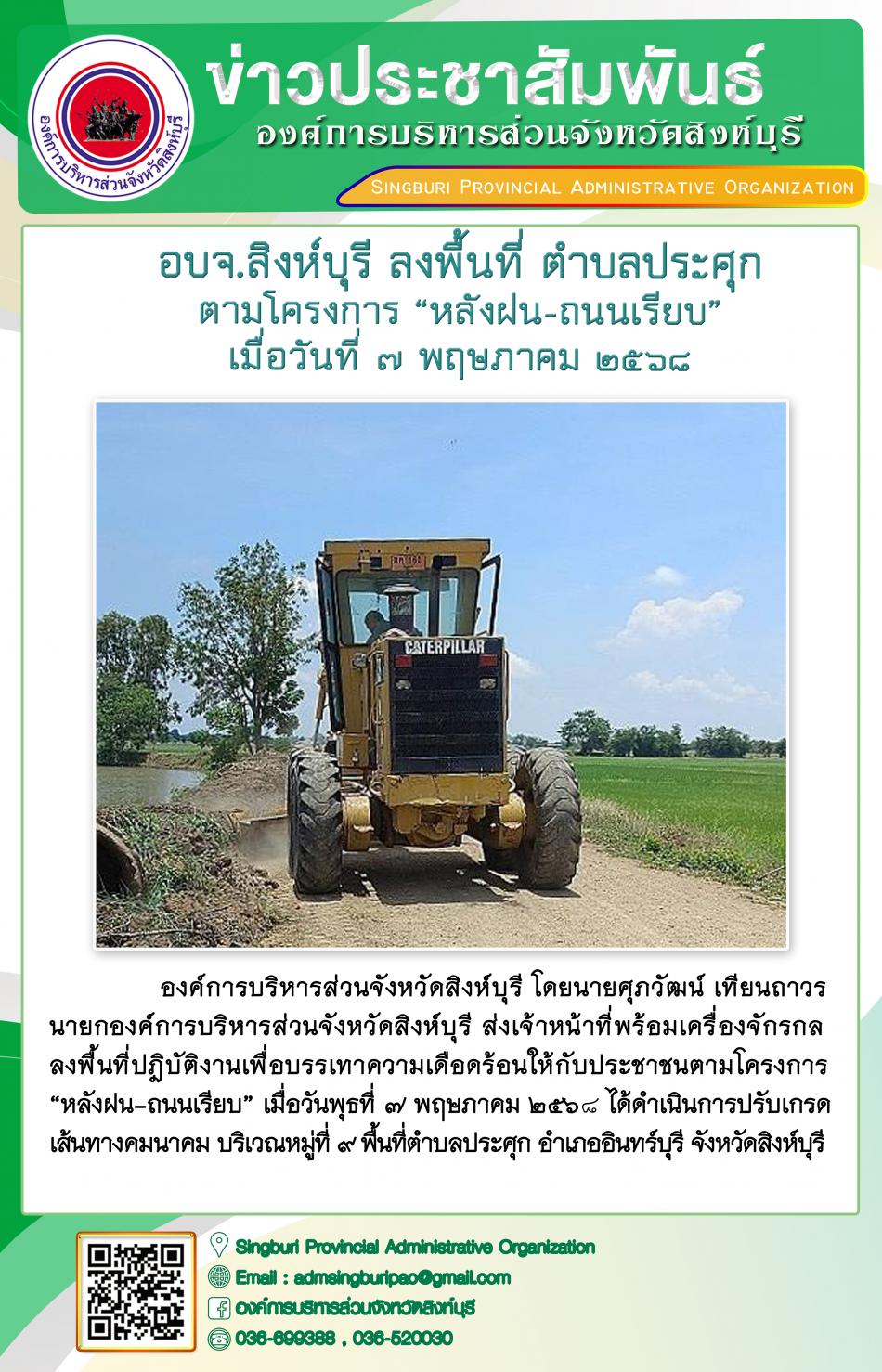 อบจ.สิงห์บุรี ลงพื้นที่ อบต.ประศุก ตามโครงการ "หลังฝน - ถนนเรียบ" [7 พฤษภาคม 2568]