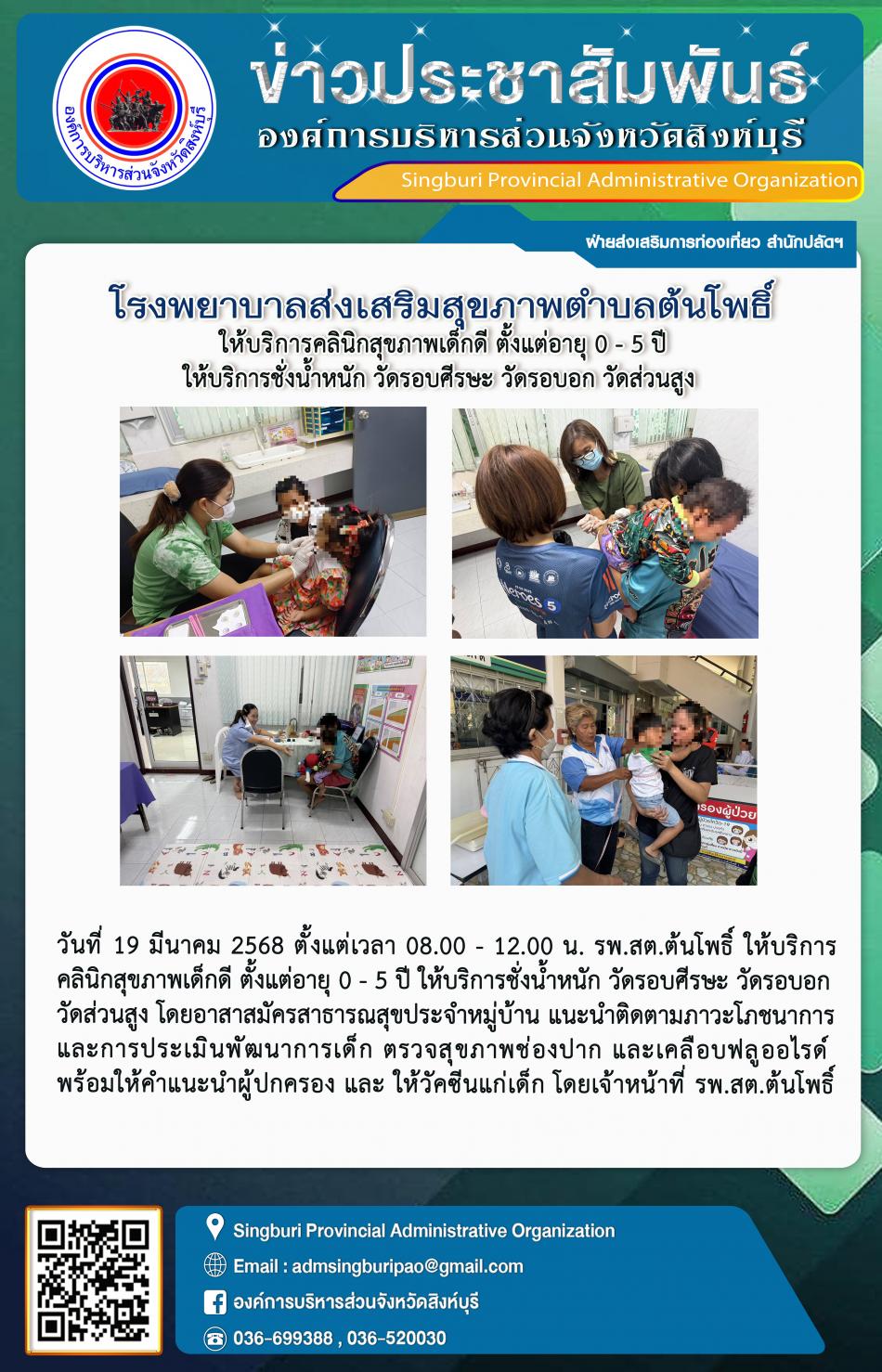 โรงพยาบาลส่งเสริมสุขภาพตำบลต้นโพธิ์ ให้บริการคลินิกสุขภาพเด็กดี ตั้งแต่อายุ 0 - 5 ปี [19 มีนาคม 2568]