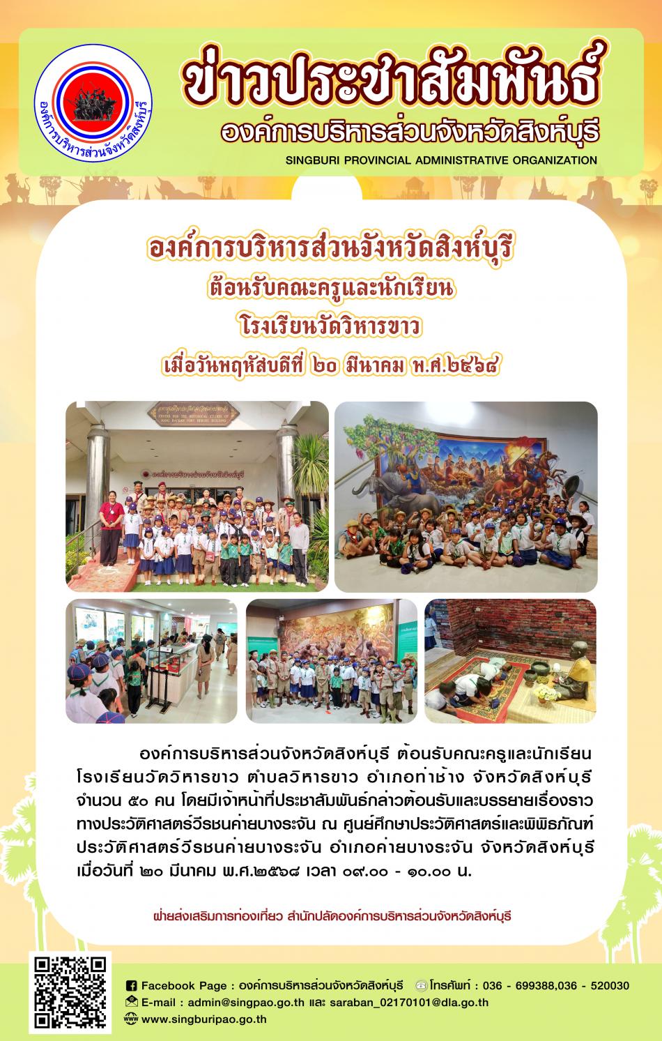 องค์การบริหารส่วนจังหวัดสิงห์บุรี ต้อนรับคณะครูและนักเรียนโรงเรียนวัดวิหารขาว [20 มีนาคม 2568]