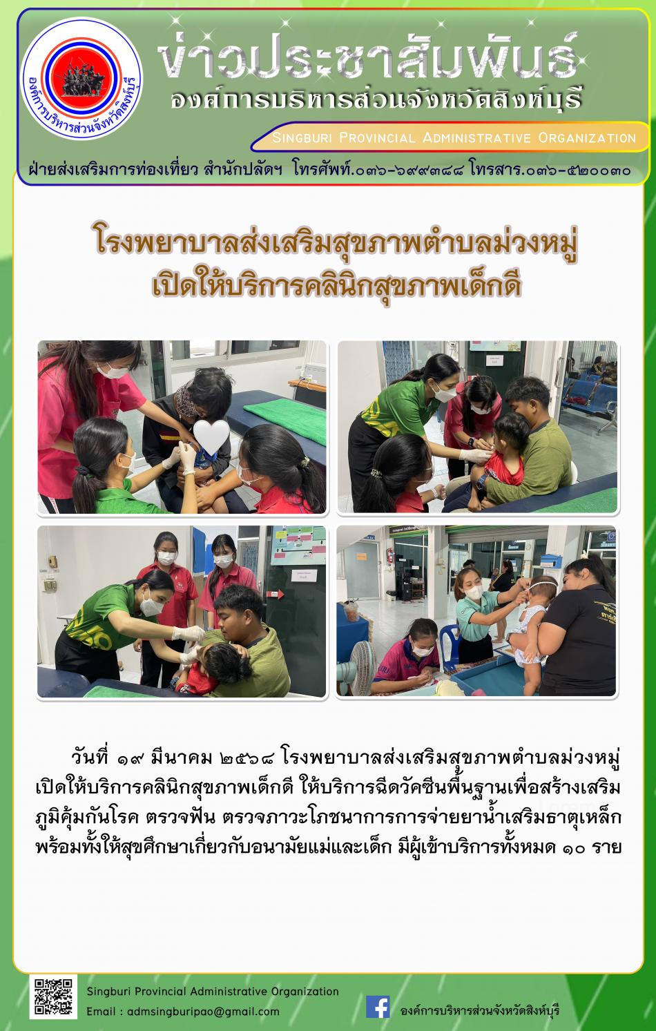 โรงพยาบาลส่่งเสริมสุขภาพตำบลม่วงหมู่ เปิดให้บริการคลินิกสุขภาพเด็กดี [19 มีนาคม 2568]