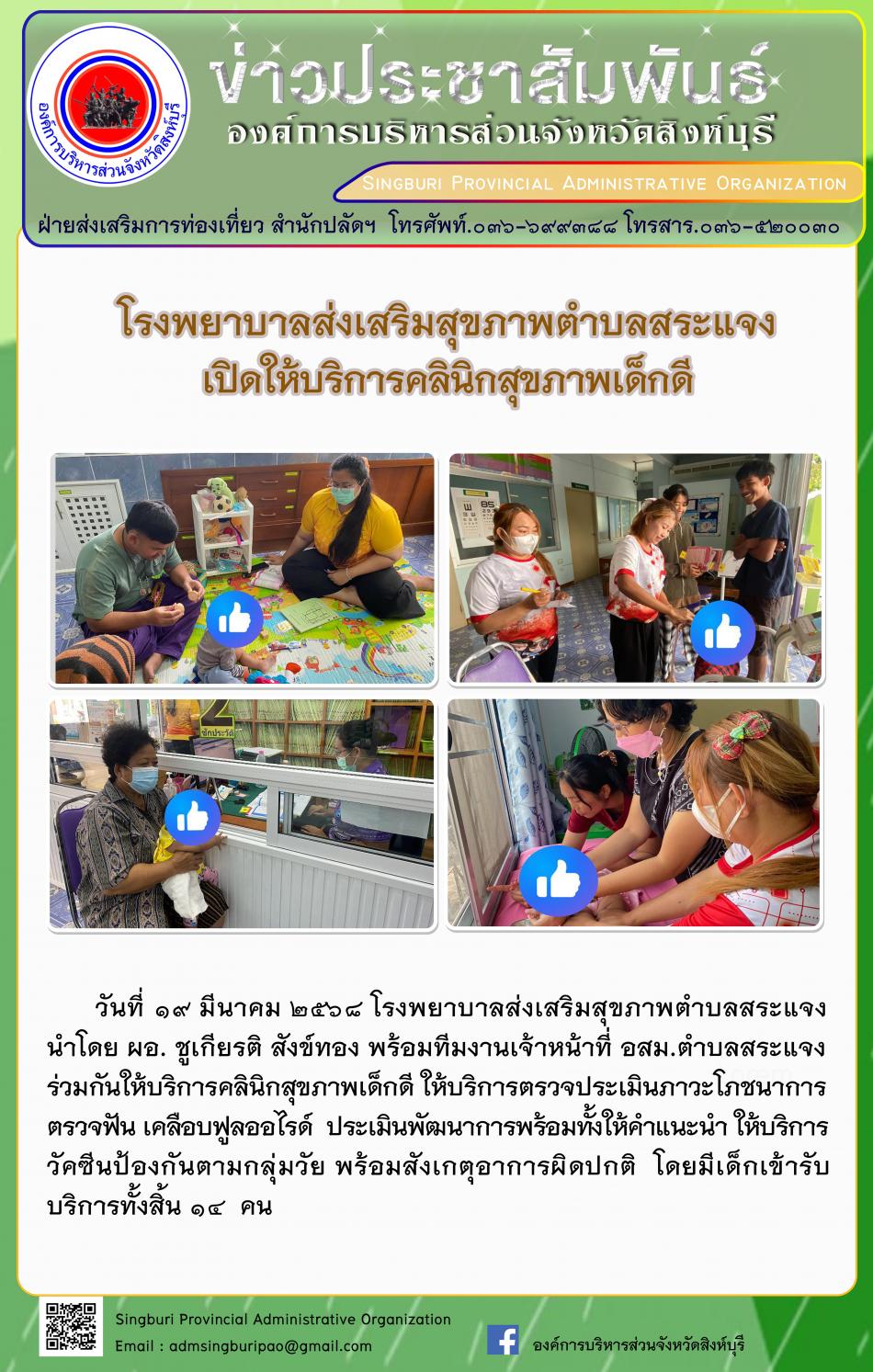 โรงพยาบาลส่งเสริมสุขภาพตำบลสระแจง เปิดให้บริการคลินิกสุขภาพเด็กดี [19 มีนาคม 2568]