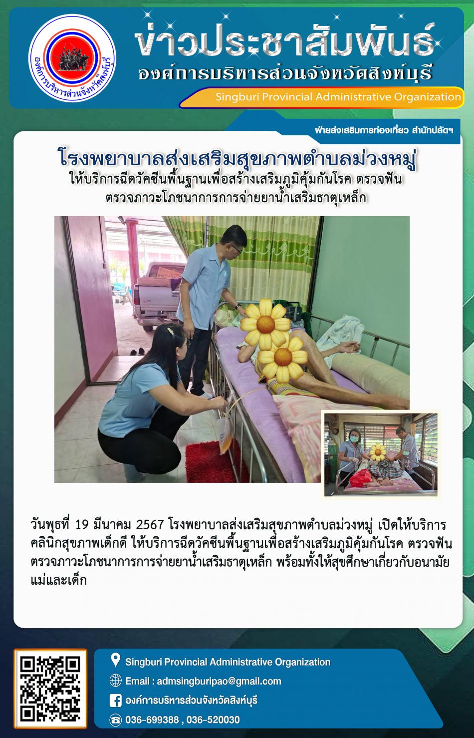 โรงพยาบาลส่งเสริมสุขภาพตำบลม่วงหมู่ ให้บริการฉีดวัคซีนพื้นฐานเพื่อสร้างเสริมภูมิคุ้มกันโรค ตรวจฟัน ตรวจภาวะโภชนาการการจ่ายยาน้ำเสริมธาตุเหล็ก [19 มีนาคม 2568]