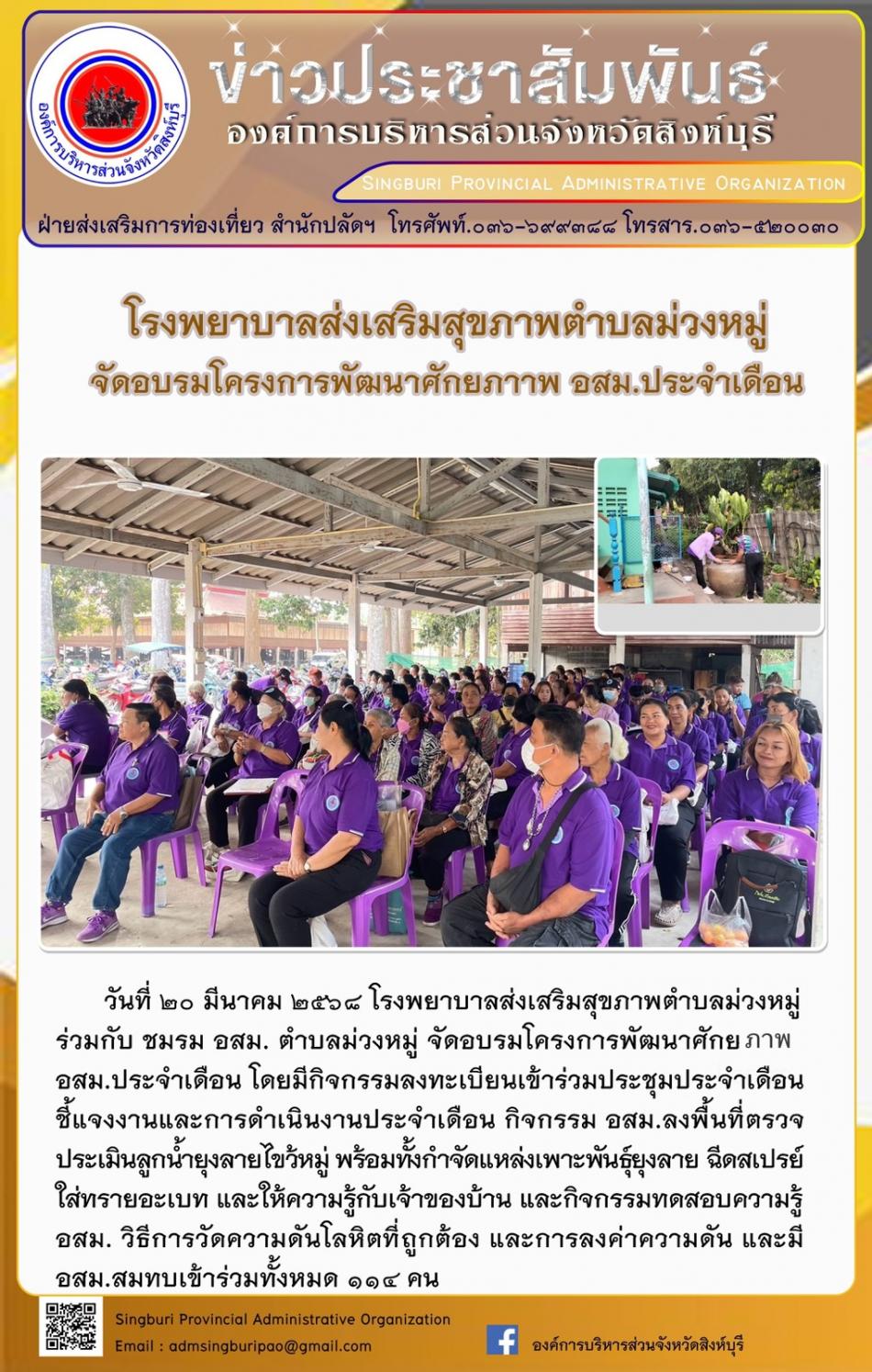 โรงพยาบาลส่งเสริมสุขภาพตำบลม่วงหมู่ จัดอบรมโครงการพัฒนาศักยภาพ อสม.ประจำเดือน [20 มีนาคม 2568]