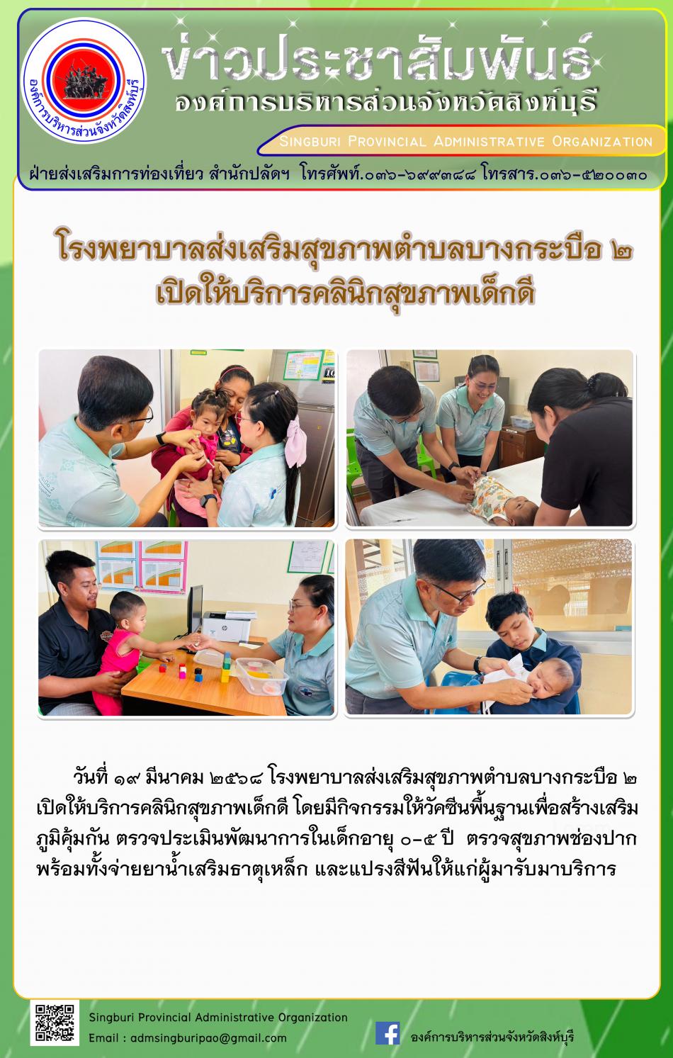 โรงพยาบาลส่งเสริมสุขภาพตำบลบางกระบือ 2 เปิดให้บริการคลินิกสุขภาพเด็กดี [19 มีนาคม 2568]