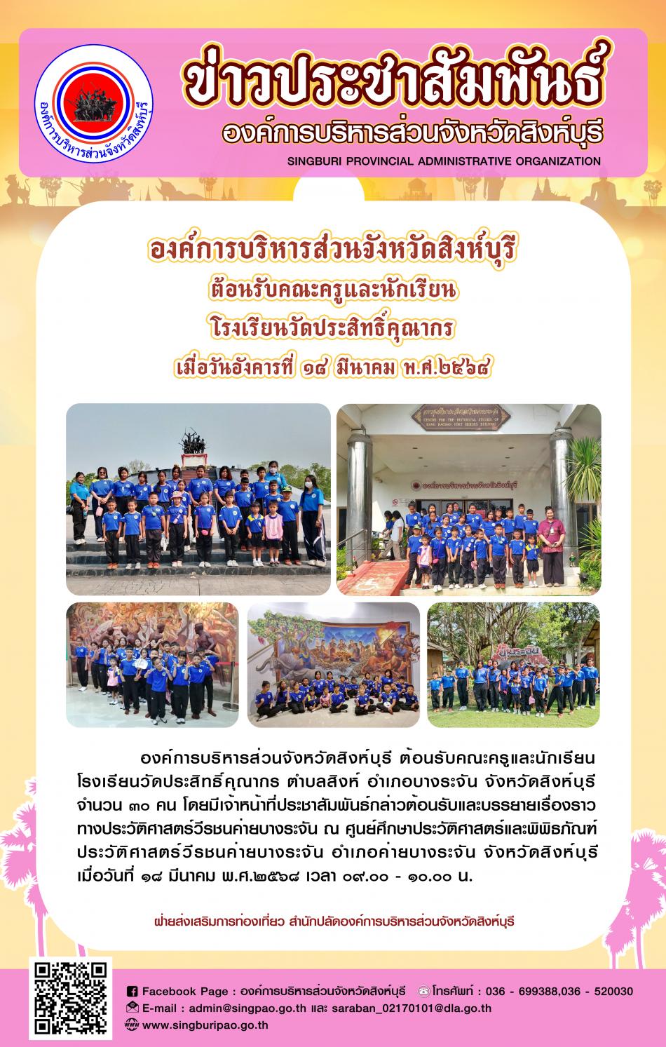 องค์การบริหารส่วนจังหวัดสิงห์บุรี ต้อนรับคณะครูและนักเรียน โรงเรียนวัดประสิทธิ์คุณากร [18 มีนาคม 2568]
