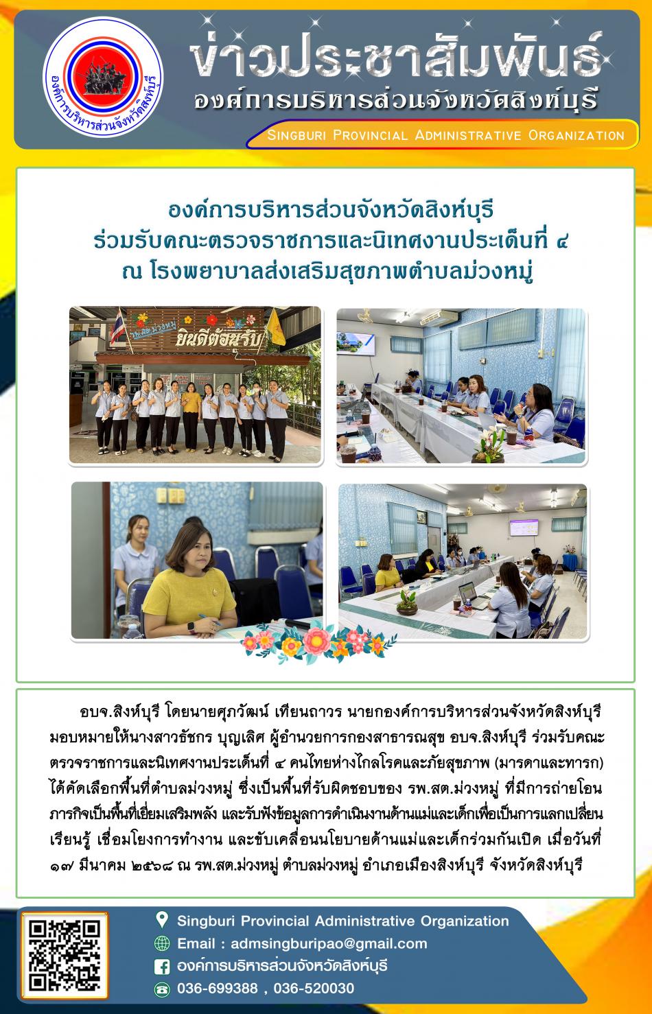 องค์การบริหารส่วนจังหวัดสิงห์บุรี ร่วมรับคณะตรวจราชการและนิเทศงานประเด็นที่ 4 ณดรงพยาบาลส่งเสริมสุขภาพตำบลม่วงหมู่ [17 มีนาคม 2568]