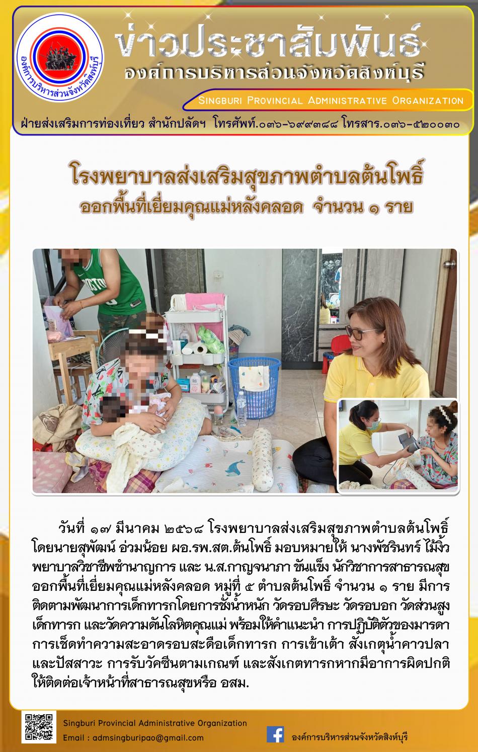 โรงพยาบาลส่งเสริมสุขภาพตำบลต้นโพธิ์ ออกพื้นที่เยี่ยมคุณแม่หลังคลอด [17 มีนาคม 2568]