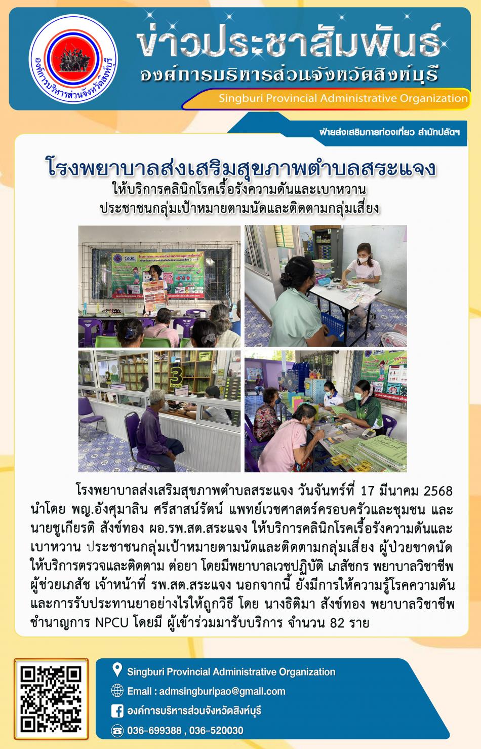 โรงพยาบาลส่งเสริมสุขภาพตำบลสระแจง ให้บริการคลินิกโรคเรื้อรังความดันและเบาหวาน [17 มีนาคม 2568]