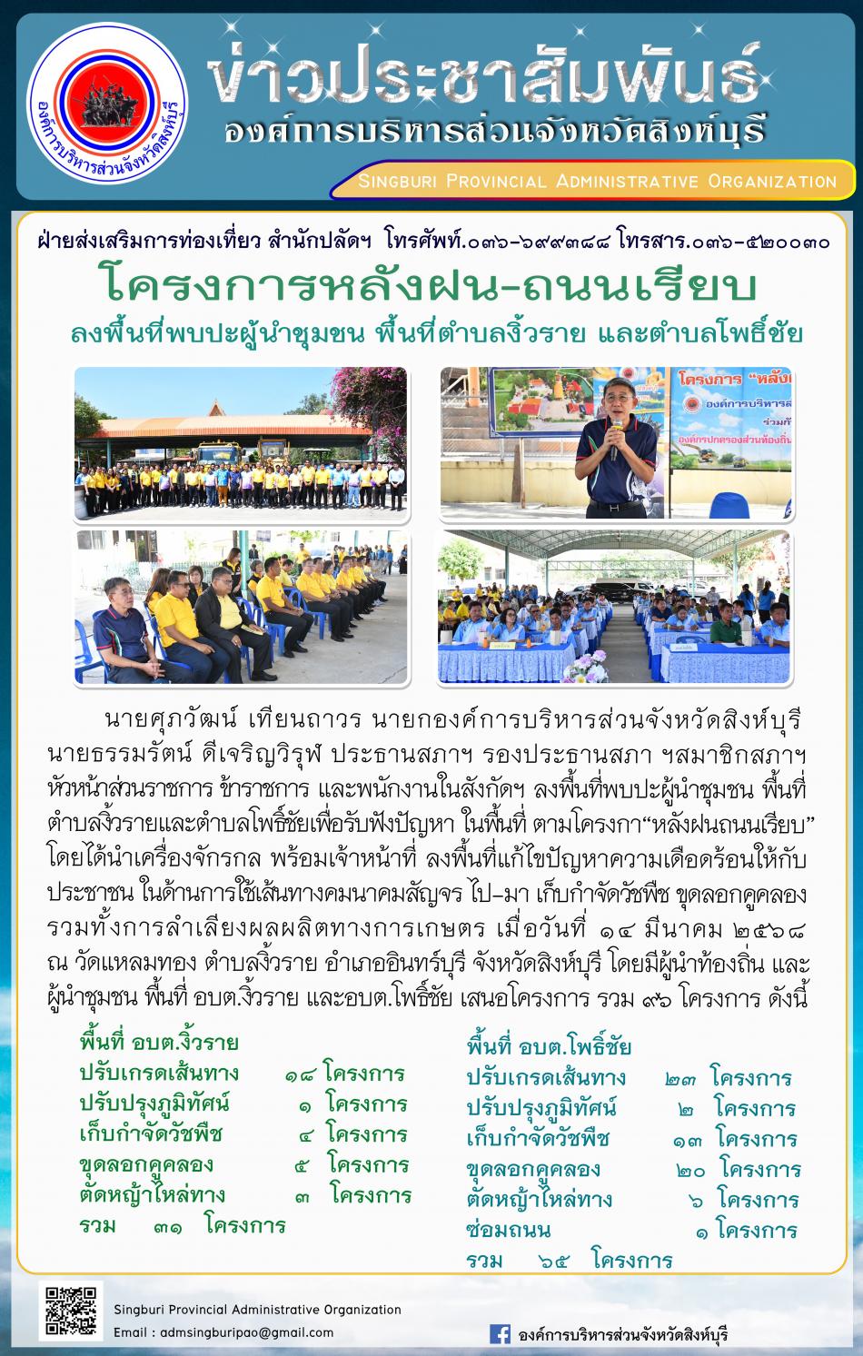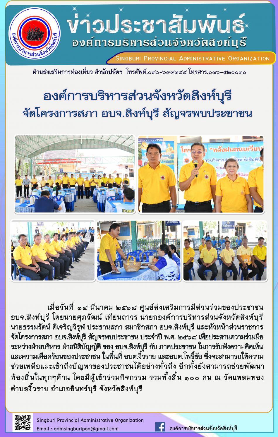 องค์การบริหารส่วนจังหวัดสิงห์บุรี จัดโครงการสภา อบจ.สิงห์บุรี สัญจรพบประชาชน [14 มีนาคม 2568]