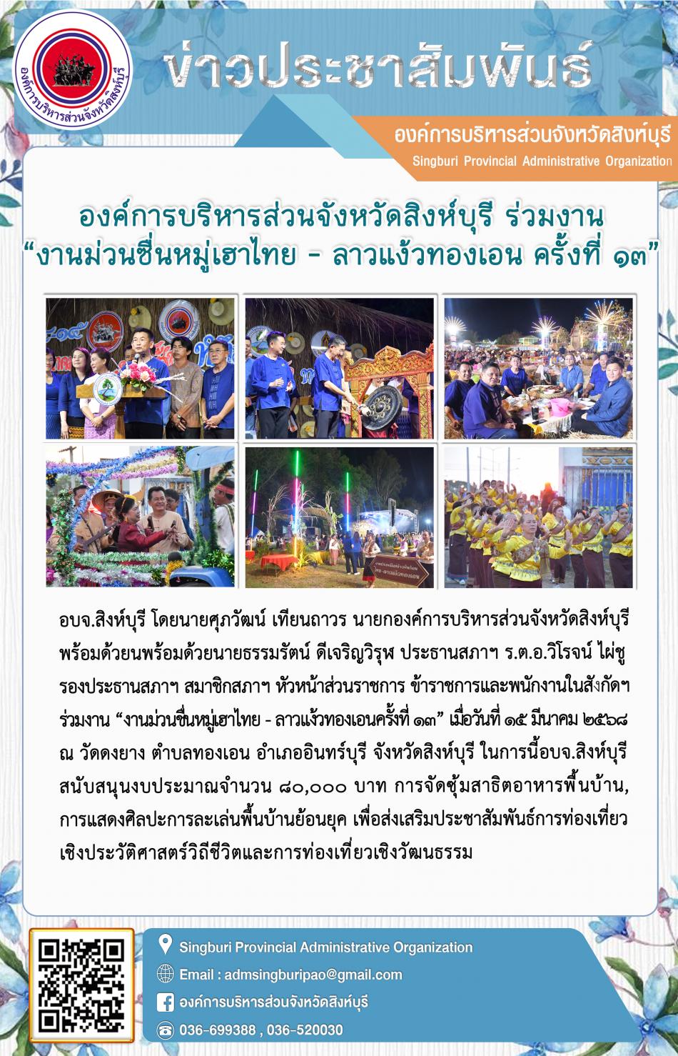 องค์การบริหารส่วนจังหวัดสิงหืบุรี ร่วมงาน"งานม่วนซื่นหมู่เฮาไทย - ลาวแง้วทองเอน ครั้งที่13 " [15 มีนาคม 2568]