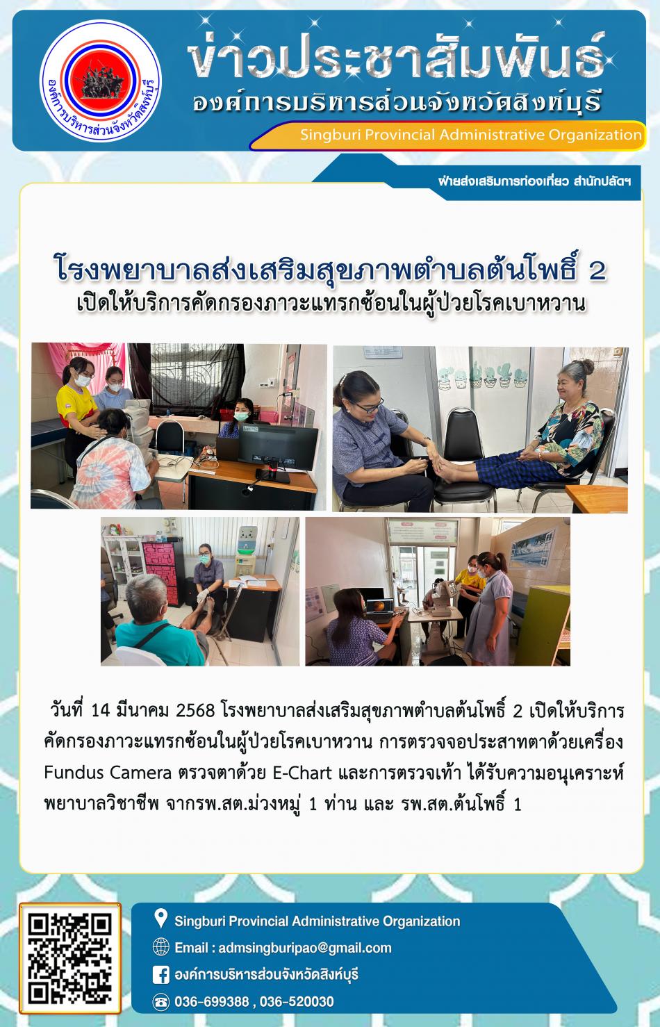 โรงพยาบาลส่งเสริมสุขภาพตำบลต้นโพธิ์ 2 เปิดให้บริการคัดกรองภาวะแทรกซ้อนในผู้ป่วยโรคเบาหวาน [14 มีนาคม 2568]