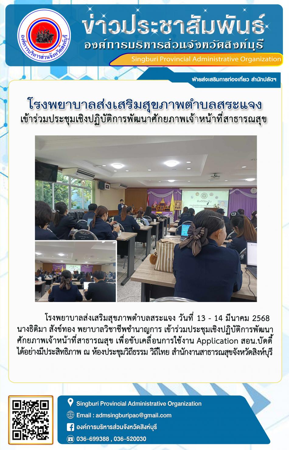 โรงพยาบาลส่งเสริมสุขภาพตำบลสระแจง เข้าร่วมประชุมเชิงปฏิบัติการพัมนาศักยภาพเจ้าหน้าที่สาธารณสุข [14 มีนาคม 2568]
