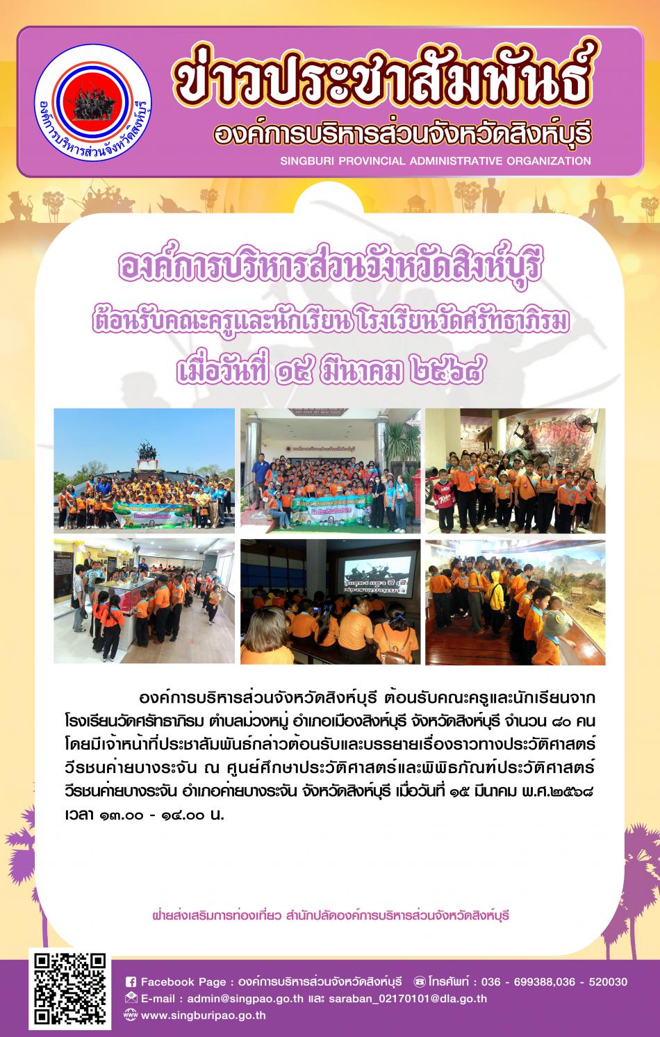 องค์การบริหารส่วนจังหวัดสิงห์บุรี ต้อนรับคณะครูและนักเรียนโรงเรียนวัดศรัทธาภิรม [15 มีนาคม 2568]