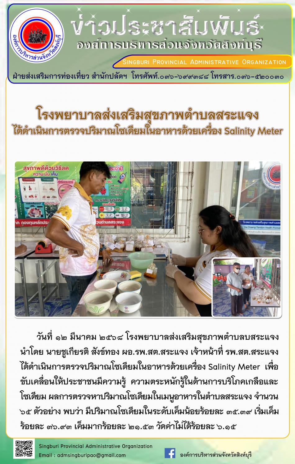 โรงพยาบาลส่งเสริมสุขภาพตำบลสระแจง ได้ดำเนินการตรวจปริมาณโซเดียมในอาหารด้วยเครื่อง Salinity Meter [12 มีนาคม 2568]