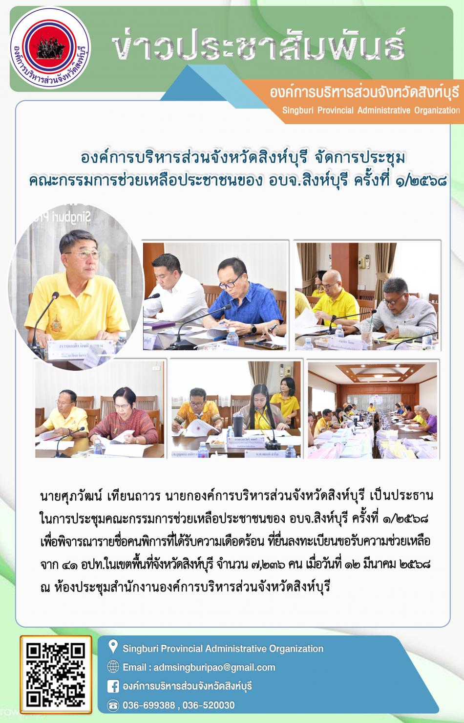 องค์การบริหารส่วนจังหวัดสิงห์บุรี จัดการประชุมคณะกรรมการช่วยเหลือประชาชนของ อบจ.สิงห์บุรี ครั้งที่ 1/2568 [12 มีนาคม 2568]