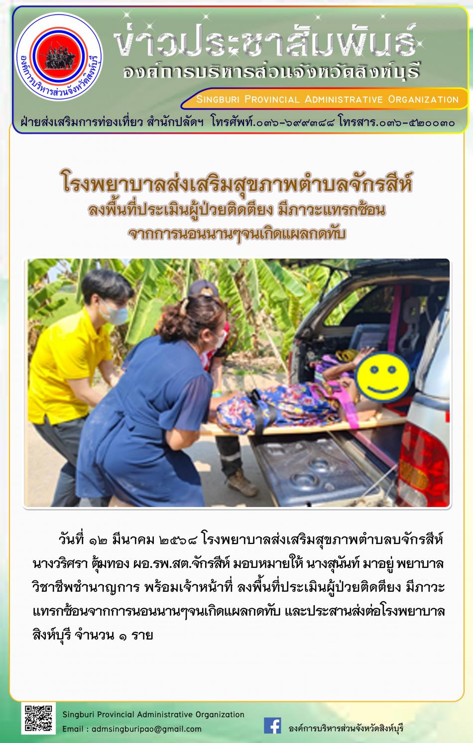 โรงพยาบาลส่งเสริมสุขภาพตำบลจักรสีห์ ลงพื้นที่ประเมินผู้ป่วยติดเตียง มีภาวะแทรกซ้อนจากการนอนนานจนเกิดแผลกดทับ [12 มีนาคม 2568]