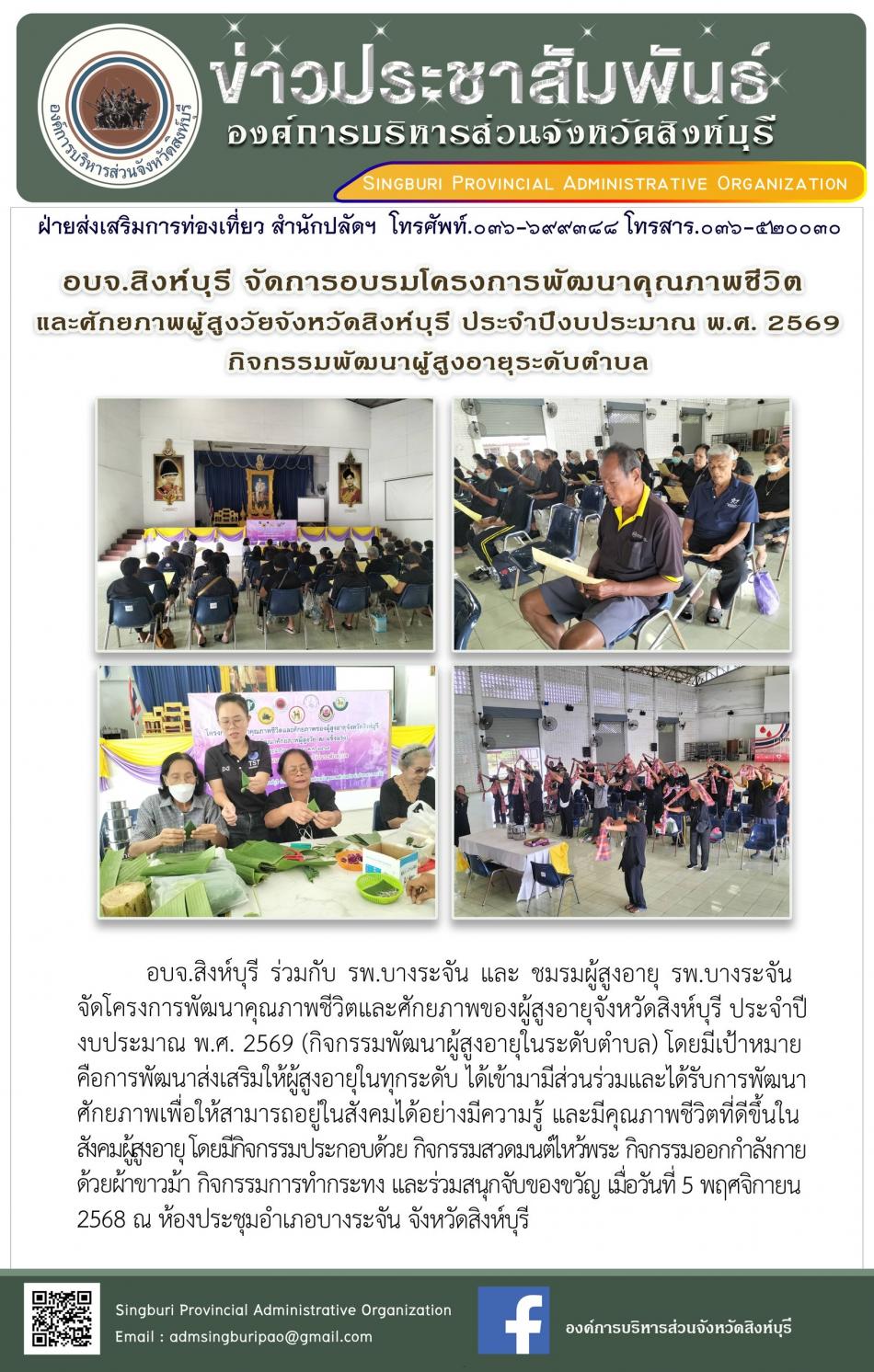 อบจ.สิงห์บุรี จัดโครงการพัฒนาคุณภาพชีวิตและศักยภาพของผู้สูงอายุ จังหวัดสิงห์บุรี ประจำปีงบประมาณ พ.ศ. 2569 กิจกรรมพัฒนาผู้สูงอายุระดับตำบล [4 พฤศจิกายน 2568]