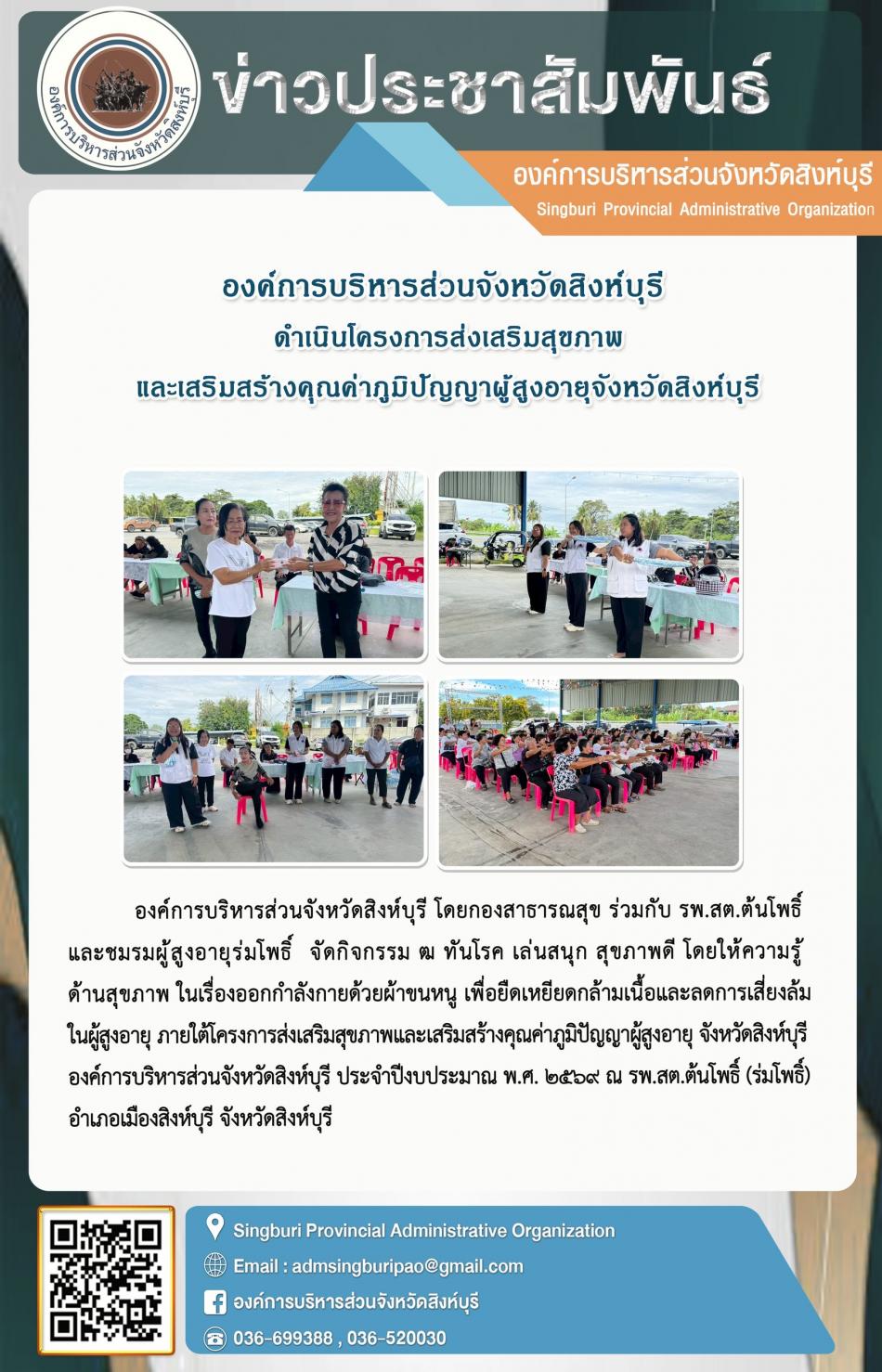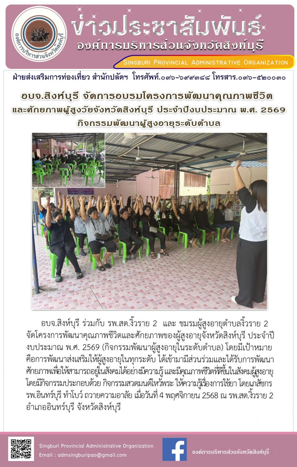 องค์การบริหารส่วนจังหวัดสิงห์บุรี ดำเดำเนินโครงการส่งเสริมสุขภาพและเสริมสร้างคุณค่าผู้สูงอายุจังหวัดสิงห์บุรี [5 พฤศจิกายน 2568]