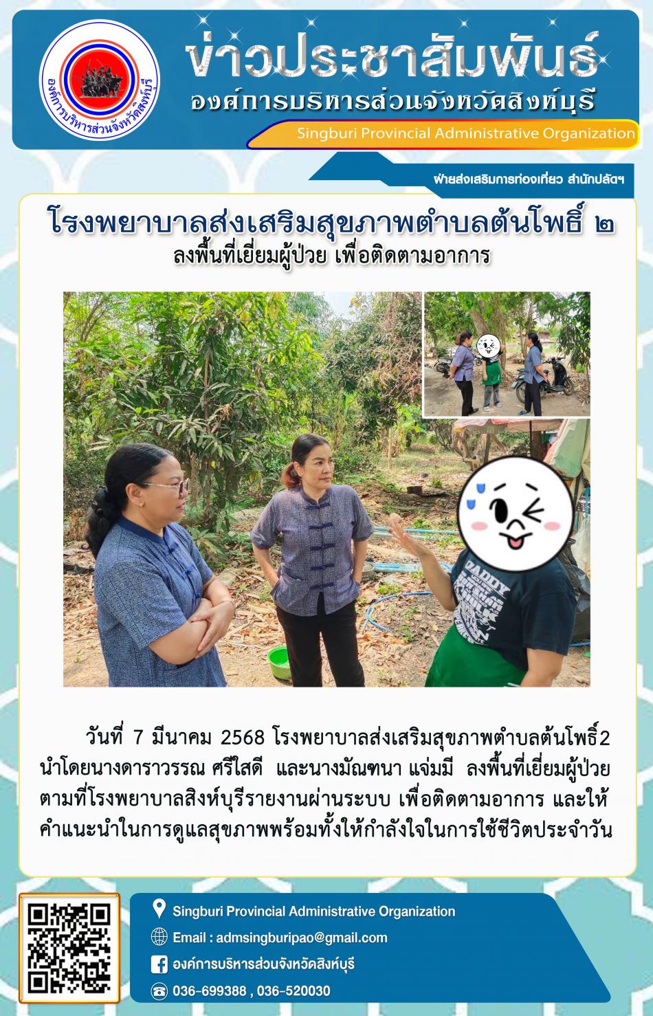 โรงพยาบาลส่งเสริมสุขภาพตำบลต้นโพธิ์ 2 ลงพื้นที่เยี่ยมผู้ป่วย เพื่อติดตามอาการ [7 มีนาคม 2568]