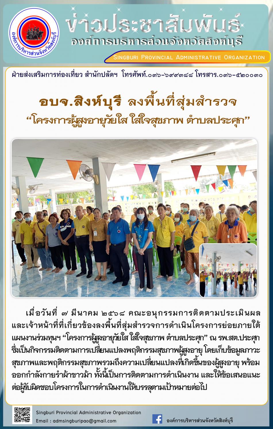 อบจ.สิงห์บุรี ลงพื้นที่สุ่มสำรวจ "ดครงการผู้สูงอายุวัยใสสุขภาพ ตำบลประศุก" [7 มีนาคม 2568]