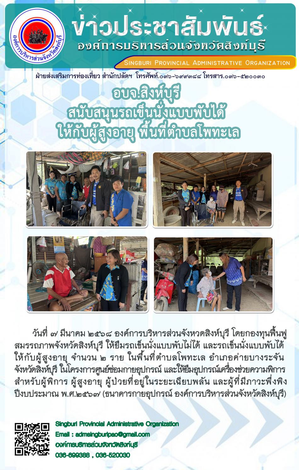 อบจ.สิงห์บุรี สนับสนุนรถเข็นนั่งแบบพับได้ พื้นที่ตำบลโพทะเล [7 มีนาคม 2568]