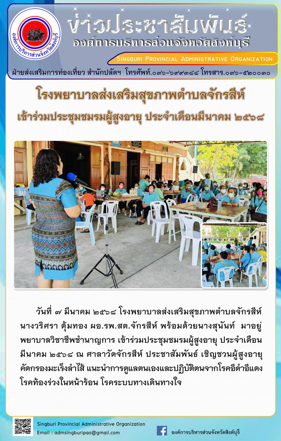 ดรงพยาบาลส่งเสริมสุขภาพตำบลจักรสีหื เข้าร่วมประชุมชมราผู้สูงอายุ ประจำเดือนมีนาคม 2568 [7 มีนาคม 2568]
