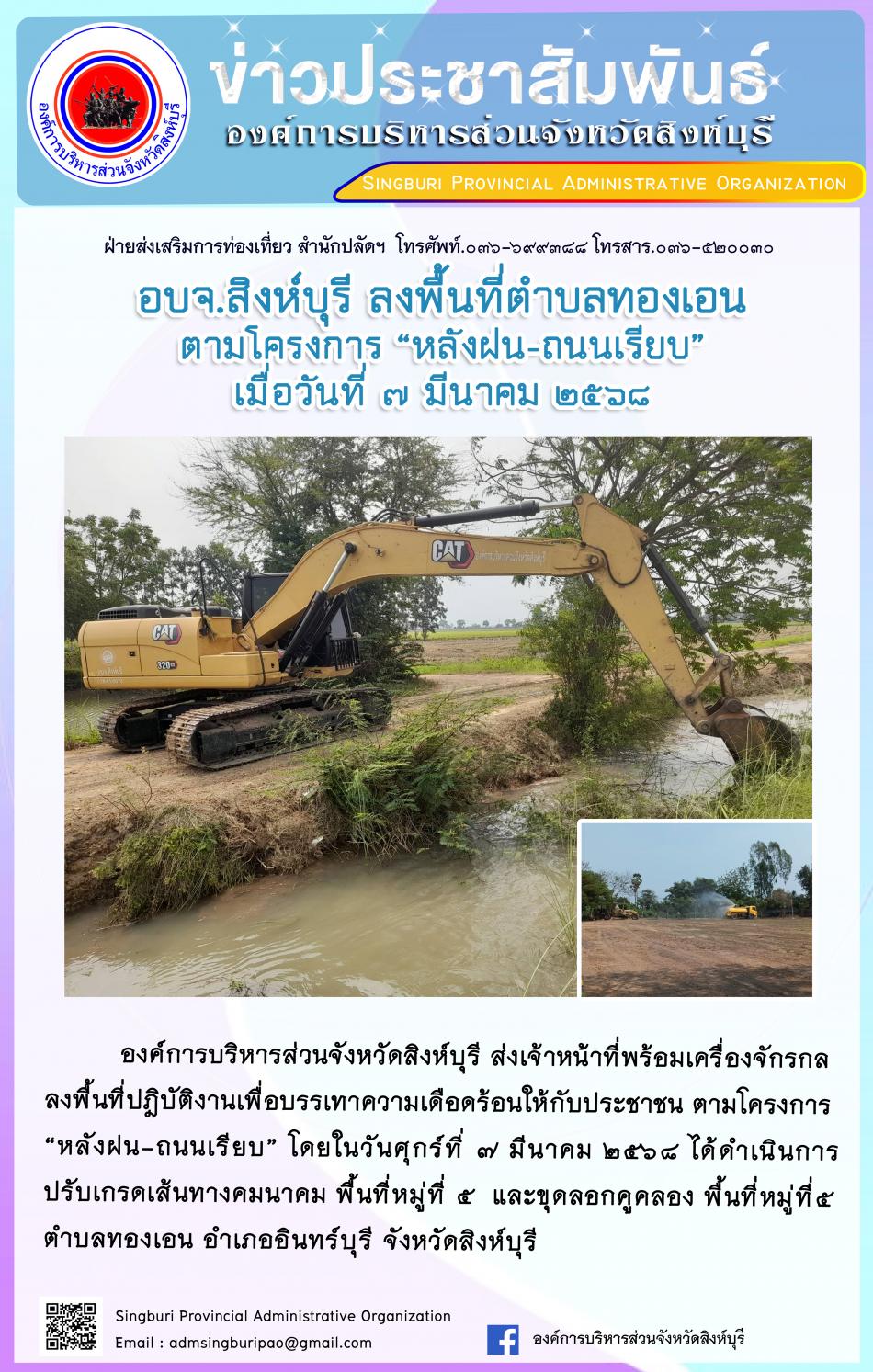 อบจ.สิงห์บุรี ลงพื้นที่ ตำบลทองเอน ตามโครงการ "หลังฝน - ถนนเรียบ" [7 มีนาคม 2568]