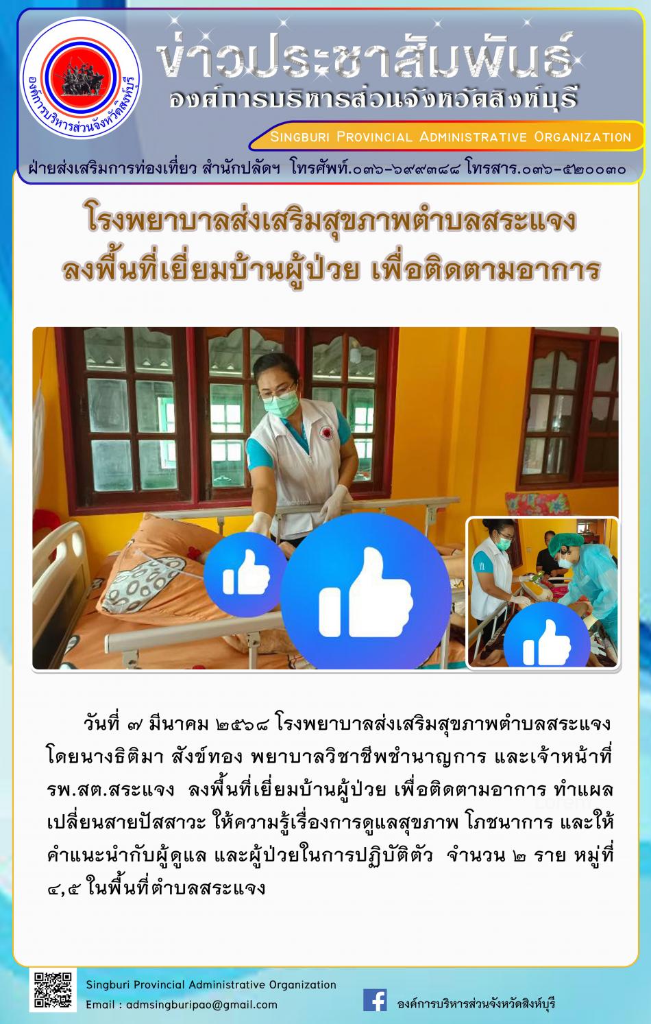 โรงพยาบาลส่งเสริมสุขภาพตำบลสระแจง ลงพื้นที่เยี่ยมบ้านผู้ป่วย เพื่อติดตามอาการ [7 มีนาคม 2568]