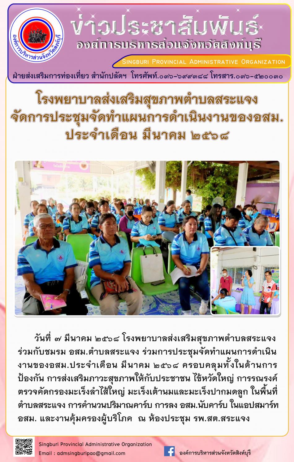 โรงพยาบาลส่งเสริมสุขภาพตำบลสระแจง จัดการประชุมจัดทำแผนการดำเนินงานของ อสม.ประจำเดือน มีนาคม 2568 [7 มีนาคม 2568]