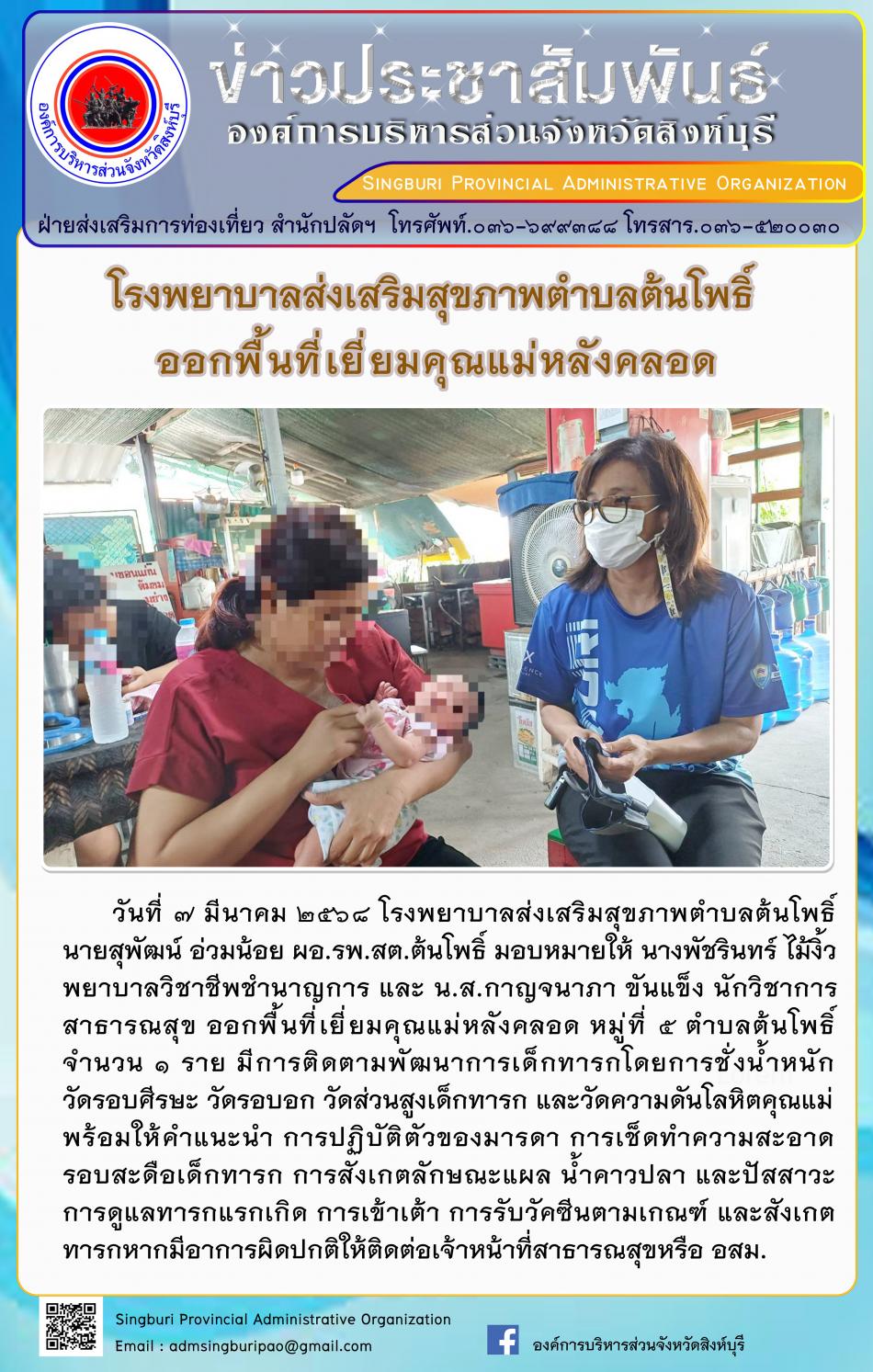 โรงพยาบาลส่งเสริมสุขภาพตำบลต้นโพธิ์ ออกพื้นที่เยี่ยมคุณแม่หลังคลอด [7 มีนาคม 2568]