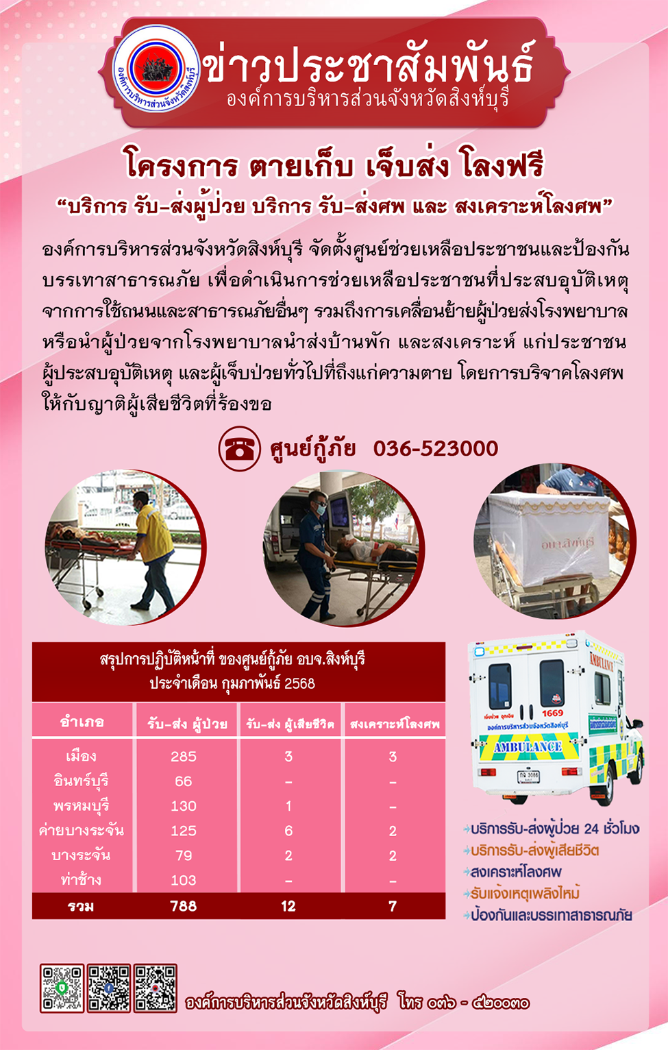 โครงการ ตายเก็บ เจ็บส่ง โลงฟรี "บริการ รับ - ส่งผู้ป่วย บริการ รับ - ส่งศพ และสงเคราะห์โลงศพ" [7 มีนาคม 2568]