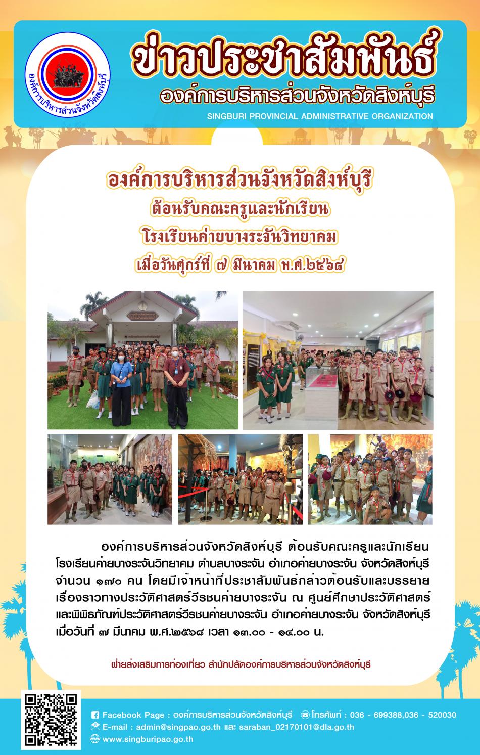 องค์การบริหารส่วนจังหวัดสิงห์บุรี ต้อนรับคณะครูและนักเรียนโรงเรียนค่ายบางระจันวิทยาคม จังหวัดสิงห์บุรี [7 มีนาคม 2568]
