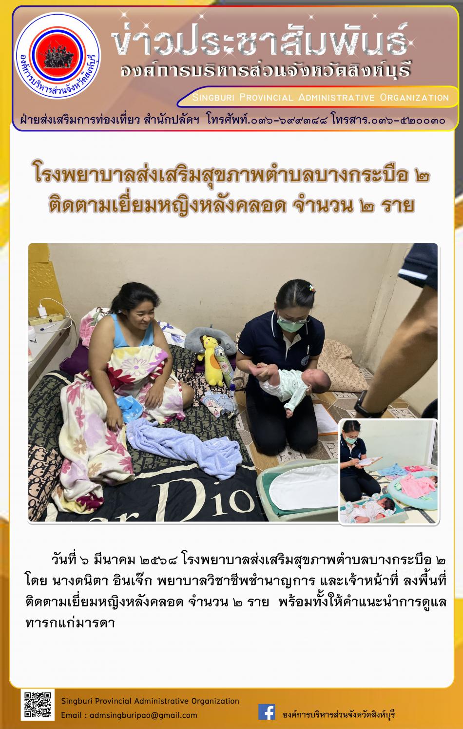โรงพยาบาลส่งเสริมสุขภาพตำบลบางกระบือ 2 ติดตามเยี่ยมหญิงหลังคลอด จำนวน 2 ราย [6 มีนาคม 2568]