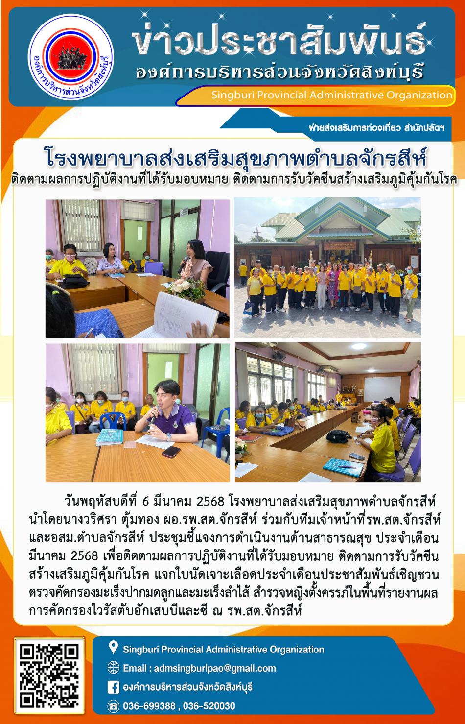 โรงพยาบาลส่งเสริมสุขภาพตำบลจักรสีห์ ติดตามผลการปฏิบัติงานที่ได้รับมอบหมาย ติดตามการรับวัคซีนสร้างเสริมภูมิคุ้มกันโรค [6 มีนาคม 2568]