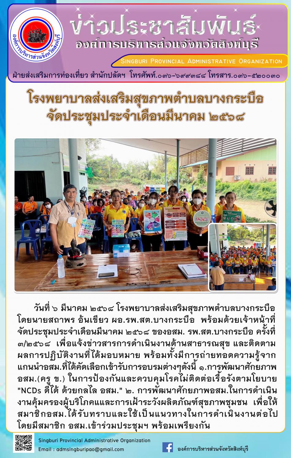 โรงพยาบาลส่งเสริมสุขภาพตำบลบางกระบือ จัดการประชุมประจำเดือนมีนาคม 2568 [6 มีนาคม 2568]