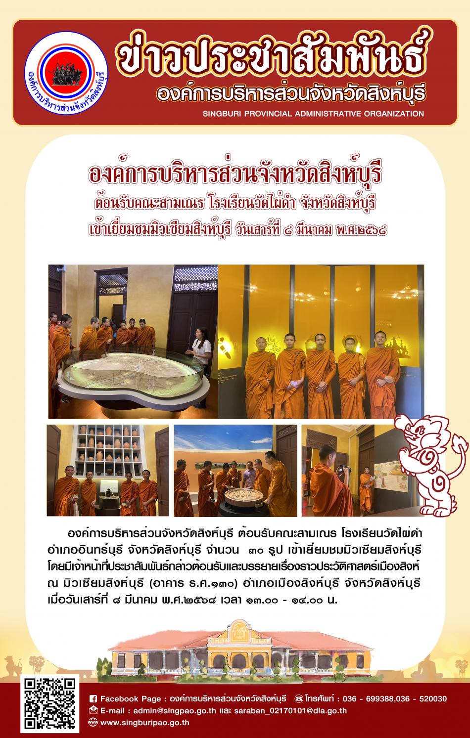 องค์การบริหารส่วนจังหวัดสิงห์บุรี ต้นรับคณะสามเณร โรงเรียนวัดไผ่ดำ จังหวัดสิงห์บุรี เข้าเยี่ยมชมมิวเซียมสิงห์บุรี [6 มีนาคม 2568]