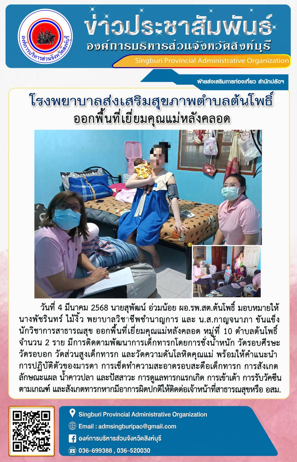 โรงพยาบาลส่งเสริมสุขภาพตำบลต้นโพธิ์ ออกพื้นที่เยี่ยมคุณแม่หลังคลอด [4 มีนาคม 2568]