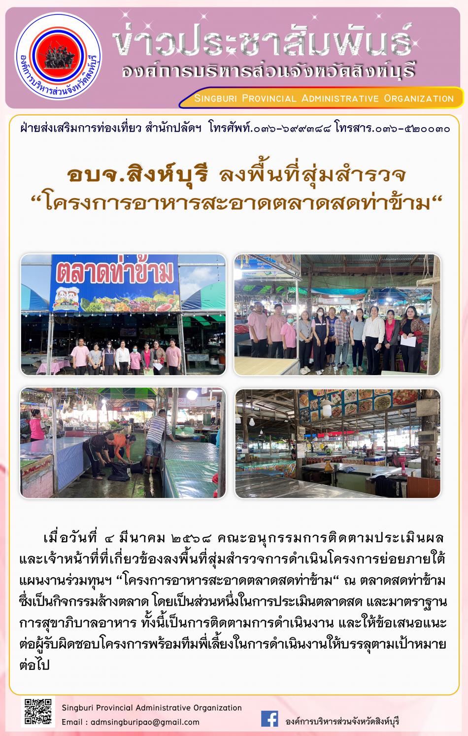 อบจ.สิงห์บุรี ลงพื้นที่สุ่มตรวจ "โครงการอาหารสะอาดตลาดท่าข้าม" [4 มีนาคม 2568]