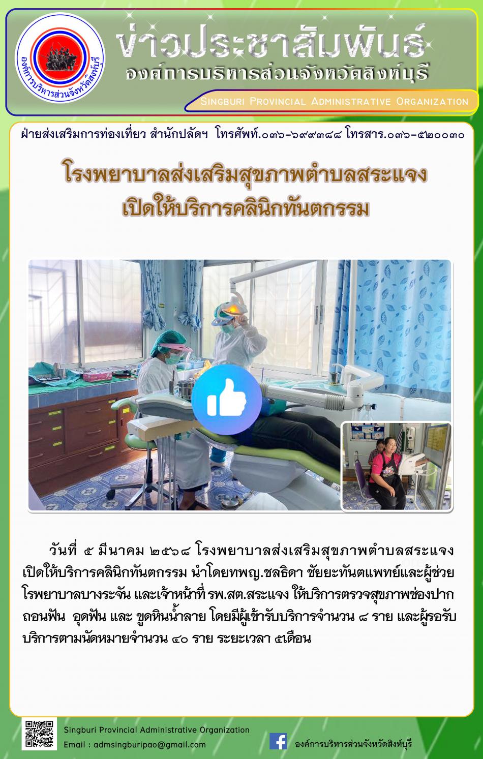 โรงพยาบาลส่งเสริมสุขภาพตำบลสระแจง เปิดให้บริการคลินิกทันตกรรม [5 มีนาคม 2568]