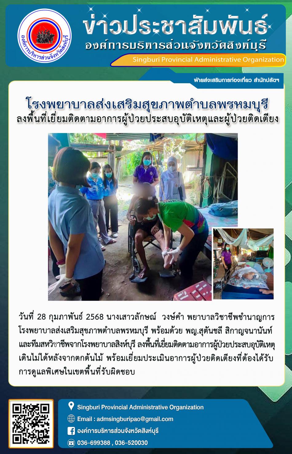 โรงพยาบาลส่งเสริมสุขภาพตำบลพรหมบุรี ลงพื้นที่ติดตามอาการผู้ป่วยประสบอุบัติเหตและผู้ป่วยติดเตียง [28 กุมภาพันธ์ 2568]